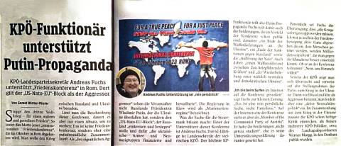 Er hatte den Aufruf für die Friedenskonferenz „Den Dritten Weltkrieg verhindern“ unterschrieben, die am 27./28. Oktober in Rom stattfinden wird – wohlgemerkt als einfaches Mitglied der KPÖ.