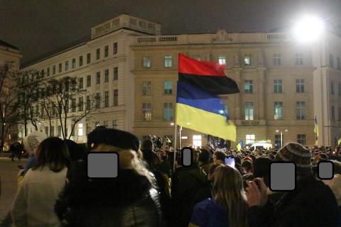 Die Meinungsvielfalt einer Friedenskonferenz wird die kämpfenden Parteien in keinem Krieg glücklich machen. Mit dem Foto will ich verdeutlichen, dass die schwarz-weiße Sichtweise des Ukrainekonflikts der Wirklichkeit nicht gerecht wird. Rechtsextreme rot-schwarze UPA-Fahnen vor der Karlskirche am Jahrestag der russischen Invasion zeigen deutlich, dass Teile der ukrainischen Bevölkerung die NS-Kollaboration der Bandera-Fraktion OUN-B und die Massaker der UPA-Armee an rund 100.000 Polen nicht aufgearbeitet haben. Die OUN wurde 1929 in Wien von Andrij Melnyk gegründet und kooperierte mit der Waffen-SS. Erst wenn die Ukraine den extrem stark vorhandenen Nationalismus überwindet (beim Euromaidan-Putsch 2014 kam immerhin sogar eine rechtsextreme Partei in die Regierung), ist ein langer Weg zu einem Frieden zwischen den Volksgruppen vielleicht wieder denkbar. Wobei es, nach all den Kriegsverbrechen beider Seiten (ja, beider Seiten! siehe UNO-Berichte), Grund genug gibt, pessimistisch zu sein.