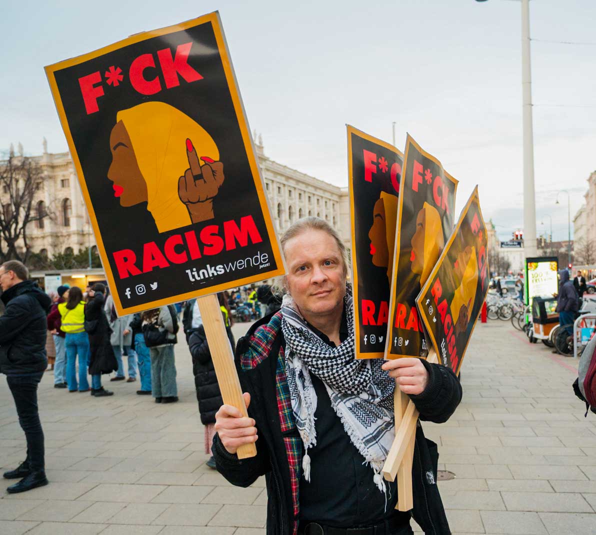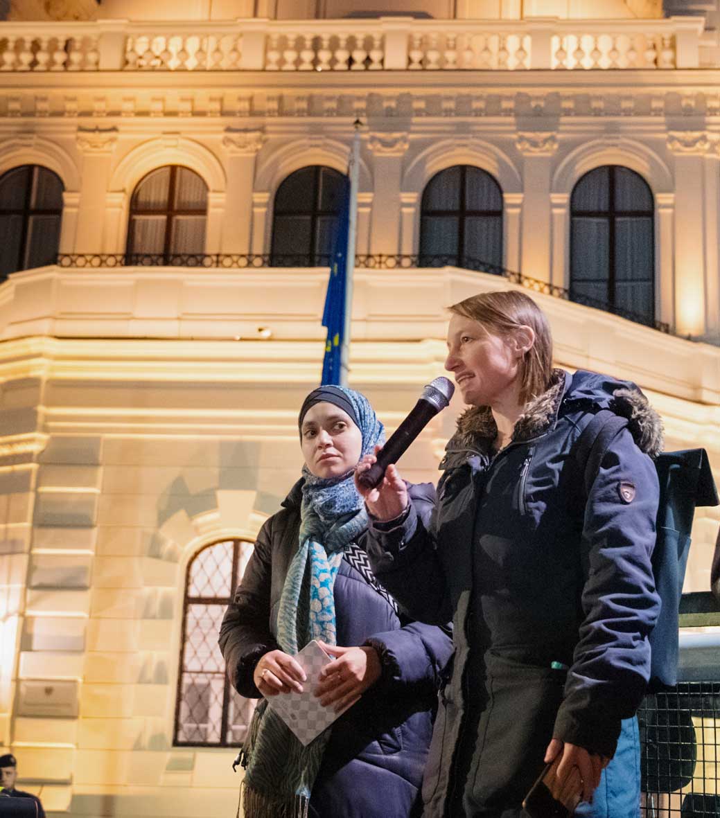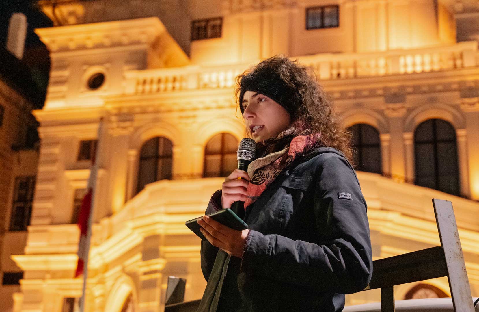 Malika Mataeva, Muslim Womens Network, betonte in ihrer Rede die Bedeutung gesellschaftlicher Solidarität zum Schutz demokratischer Rechte. Die Frauenrechtsaktivistin und Gewaltpräventionsexpertin Rosa Loger bestärkte diese Aussage: „Nicht das Kopftuch ist das Problem, sondern der Zwang“, der in diesem Fall durch das Unrechts-Gesetz gegen junge Frauen von Seiten des Staates durchgesetzt wird. Der Rechtsanwalt Marawan Mansour rief Betroffene dazu auf, rechtliche Schritte gegen das Gesetz zu prüfen, da ein Gesetz, das die Rechte einer Gruppe willkührlich beschneidet, dem Gleichheitsgrundsatz widerspricht.
