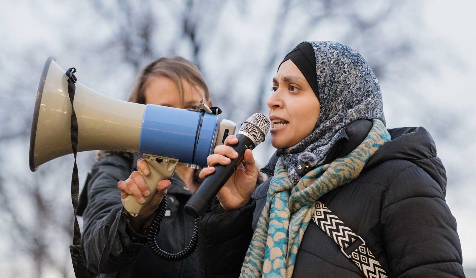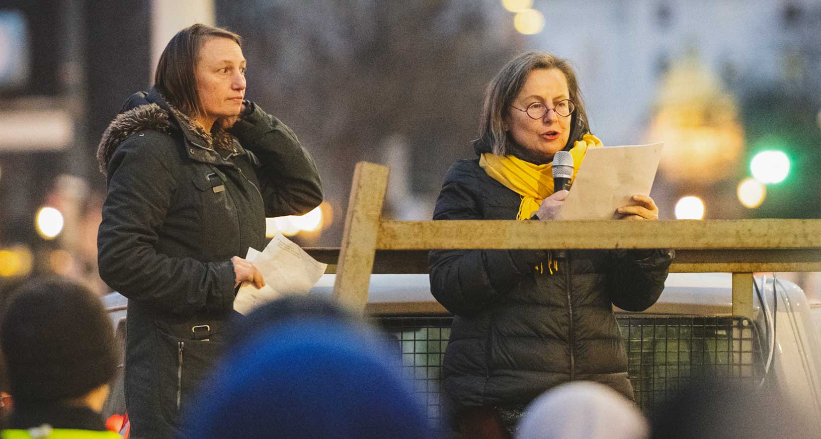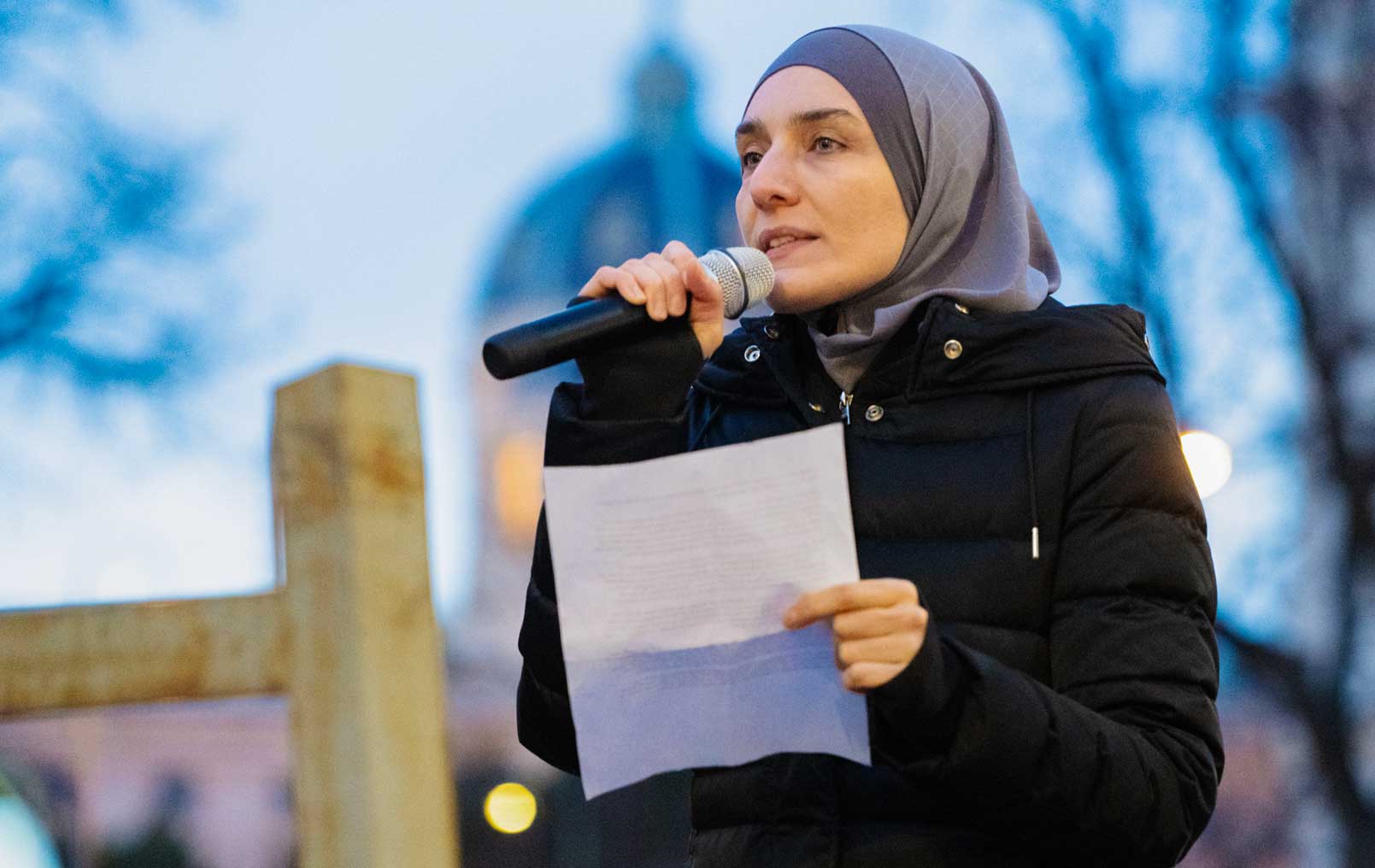 Malika Mataeva, Muslim Womens Network, betonte in ihrer Rede die Bedeutung gesellschaftlicher Solidarität zum Schutz demokratischer Rechte. Die Frauenrechtsaktivistin und Gewaltpräventionsexpertin Rosa Loger bestärkte diese Aussage: „Nicht das Kopftuch ist das Problem, sondern der Zwang“, der in diesem Fall durch das Unrechts-Gesetz gegen junge Frauen von Seiten des Staates durchgesetzt wird. Der Rechtsanwalt Marawan Mansour rief Betroffene dazu auf, rechtliche Schritte gegen das Gesetz zu prüfen, da ein Gesetz, das die Rechte einer Gruppe willkührlich beschneidet, dem Gleichheitsgrundsatz widerspricht.