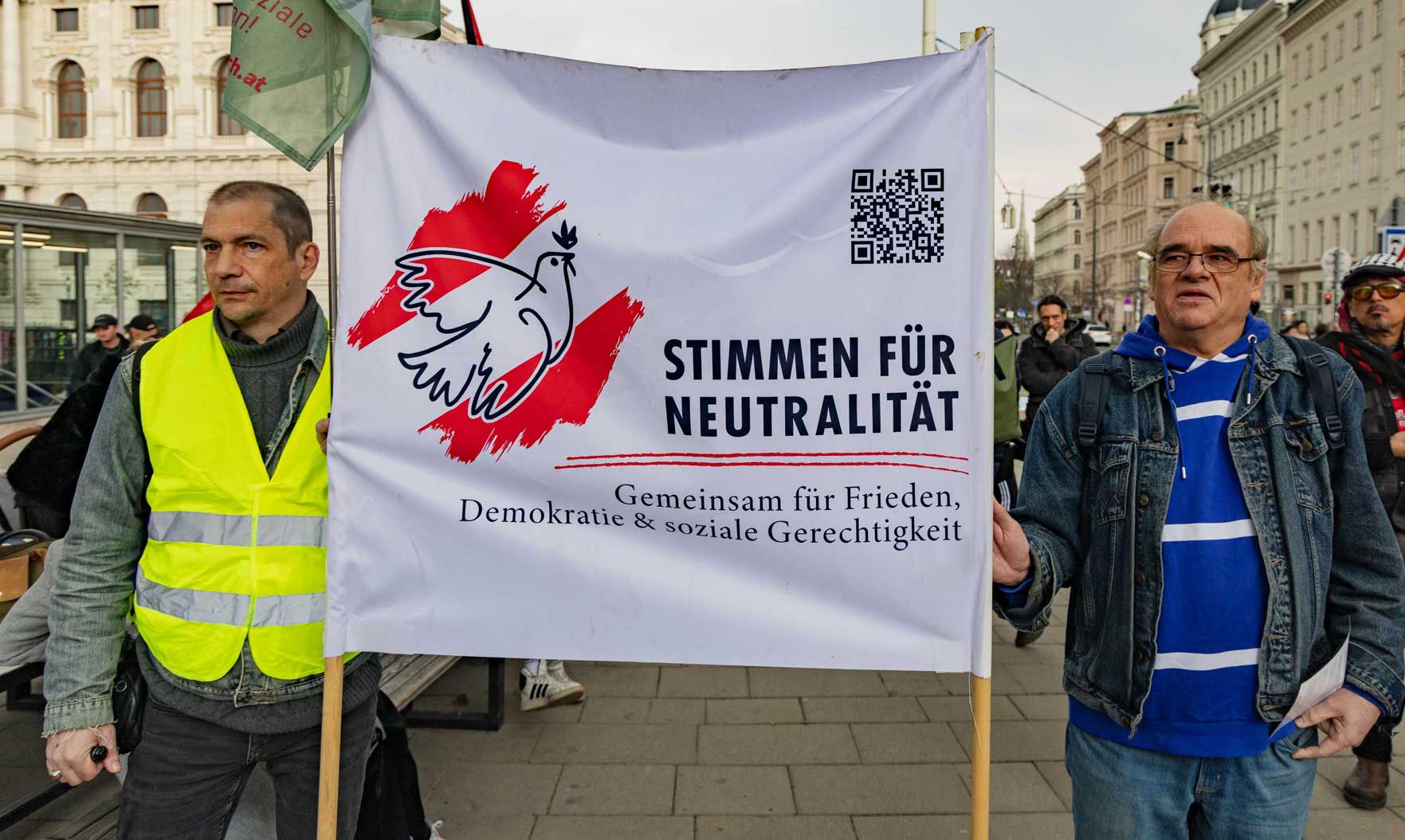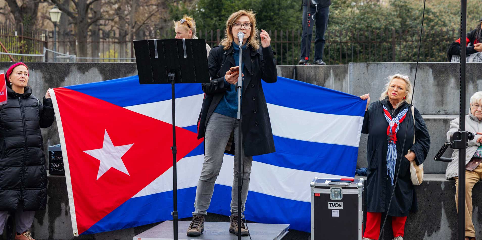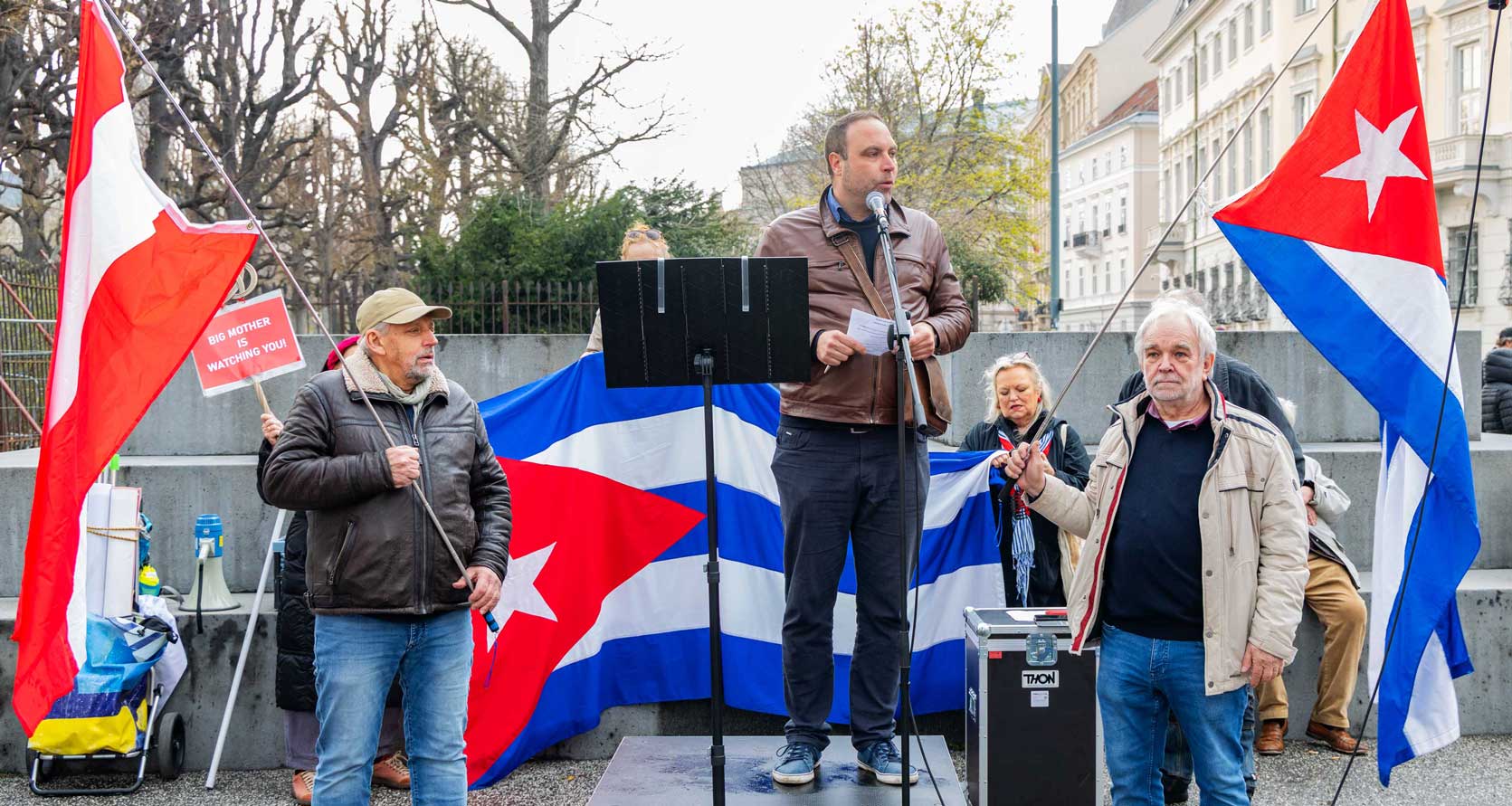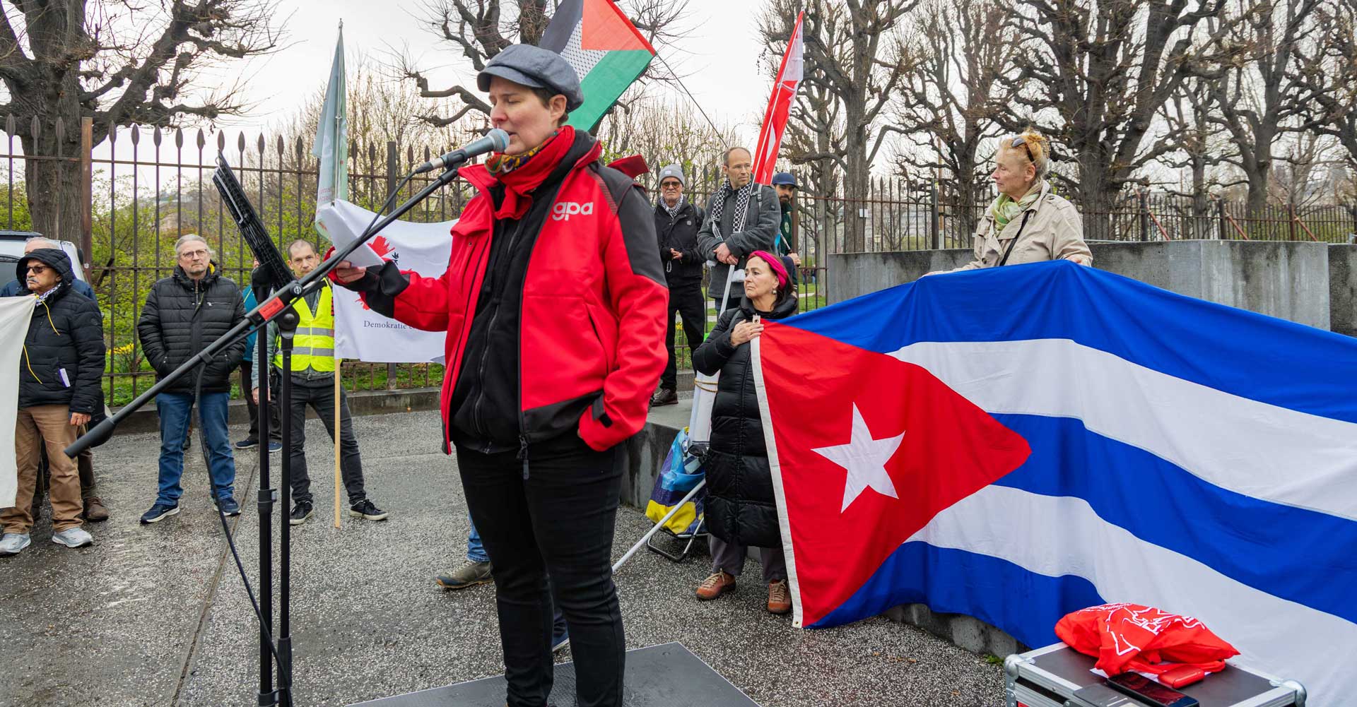 Die Demo war organisiert von der Österreichisch Kubanischen Gesellschaft gemeinsam mit dem Bündnis Stimmen für Neutralität, unterstützt von mehr al einem Dutzend unterschiedlicher Organisationen. Zahlreiche Rednerinnen und Redner drückten die Bandbreite der Mobilisierung aus.