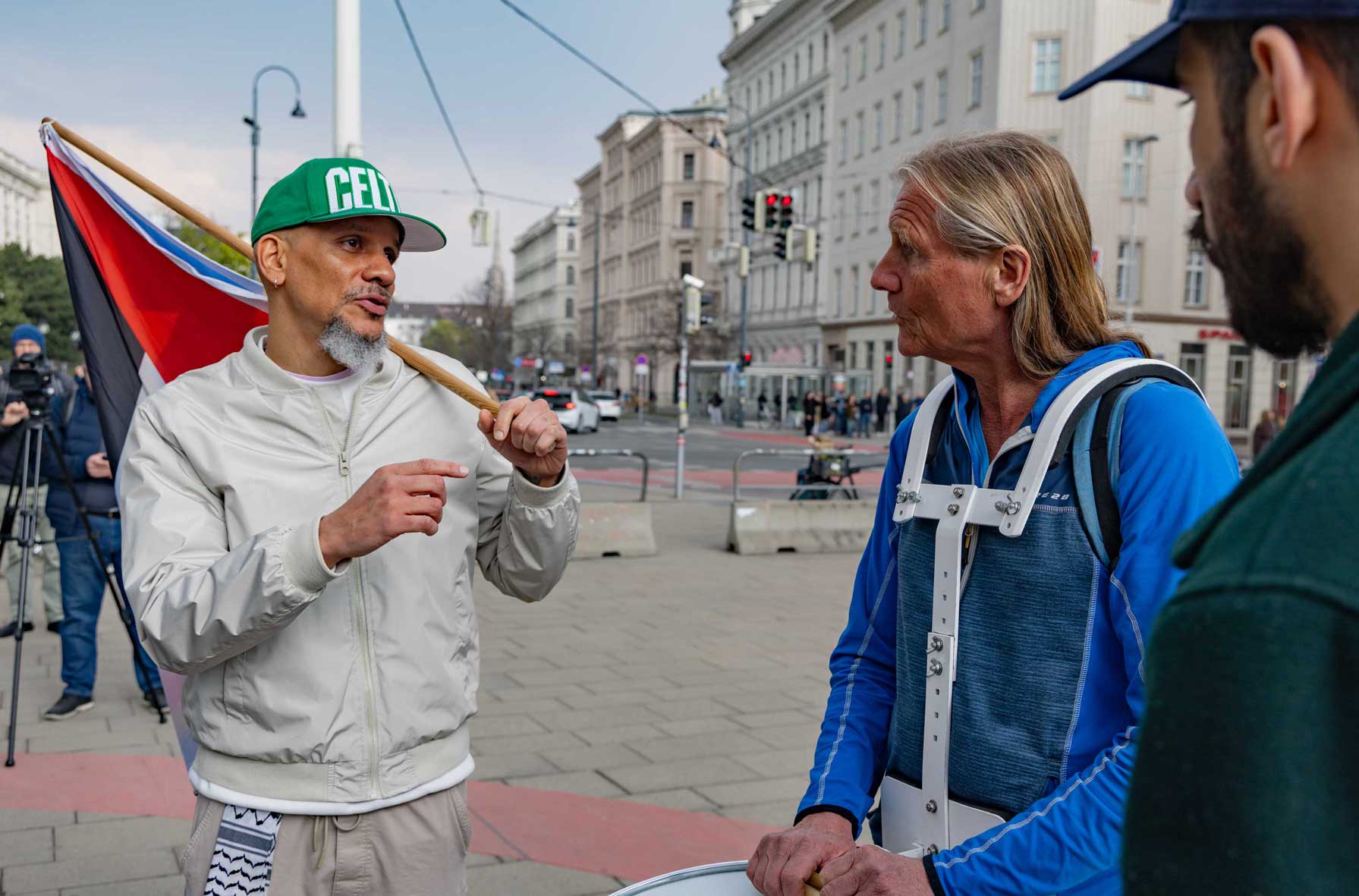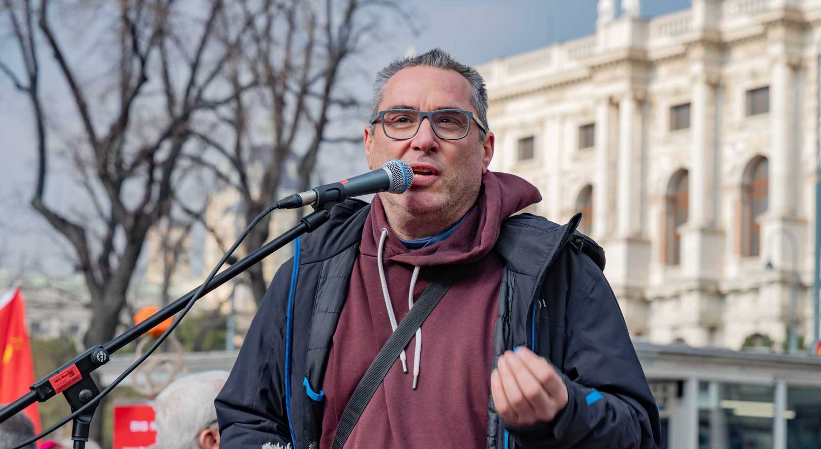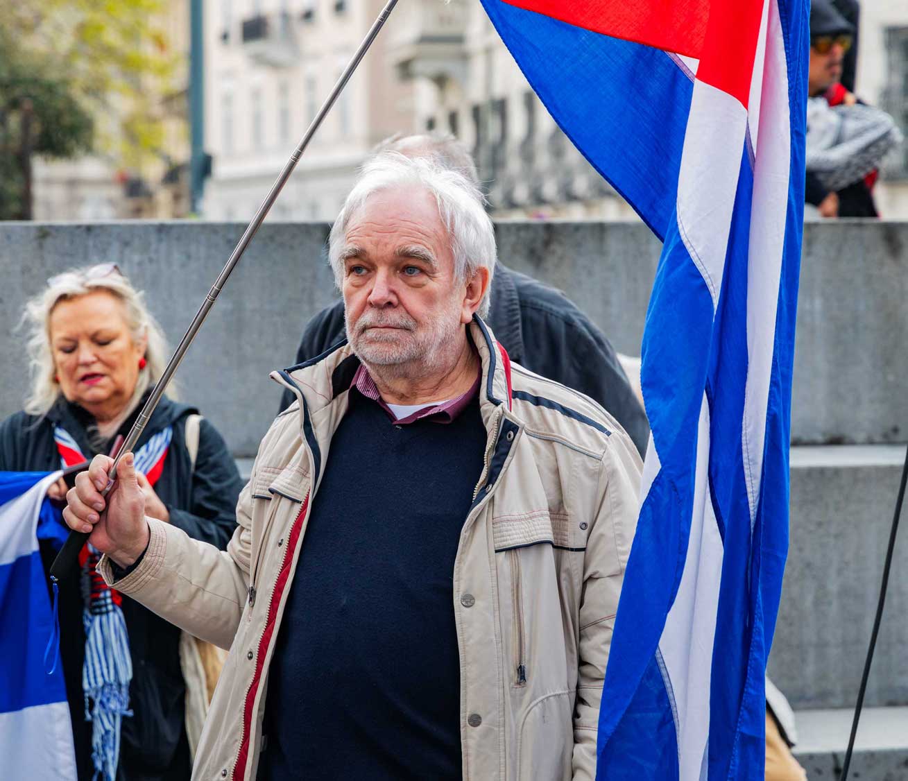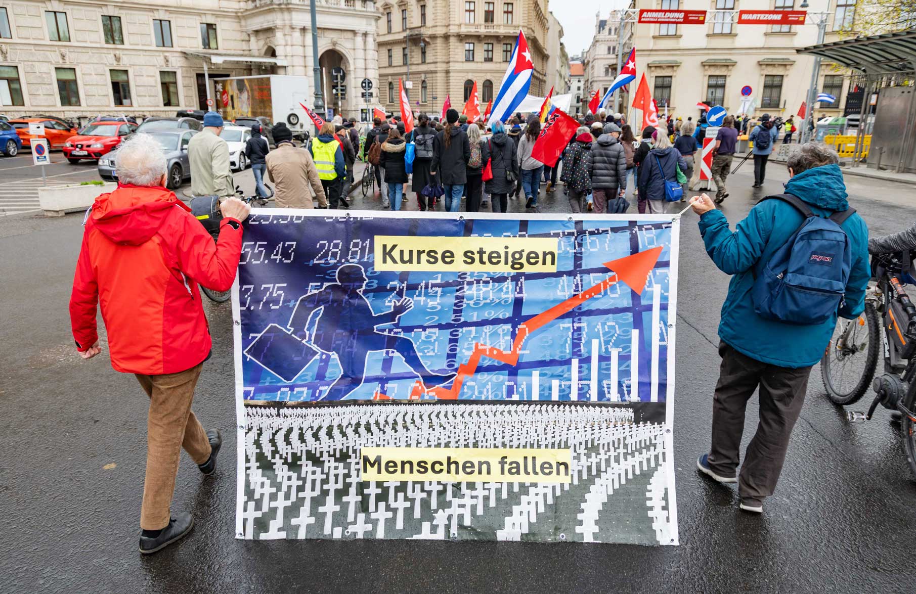 Die Demo war organisiert von der Österreichisch Kubanischen Gesellschaft gemeinsam mit dem Bündnis Stimmen für Neutralität, unterstützt von mehr al einem Dutzend unterschiedlicher Organisationen. Zahlreiche Rednerinnen und Redner drückten die Bandbreite der Mobilisierung aus.