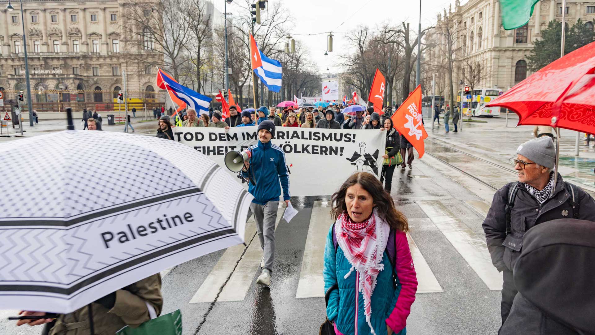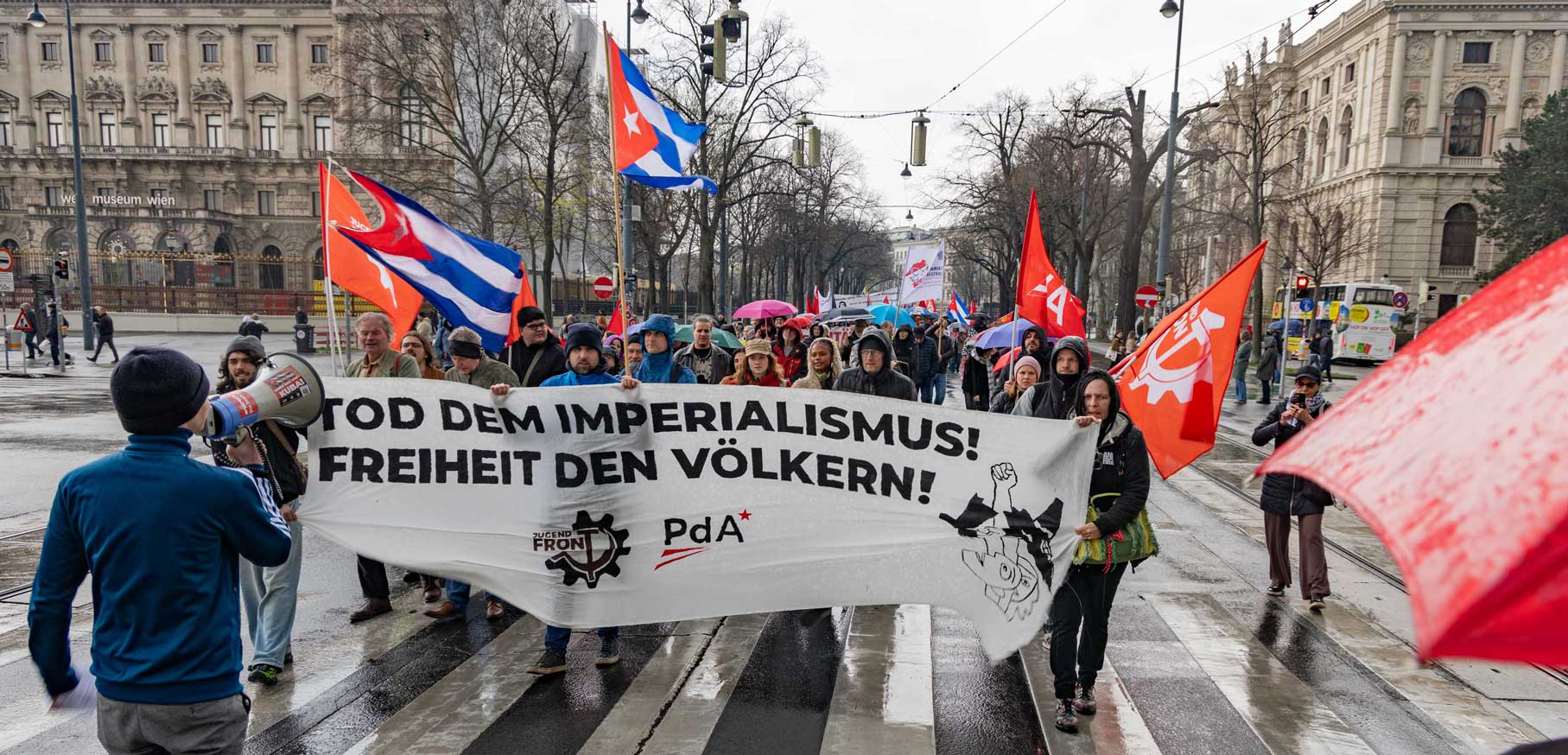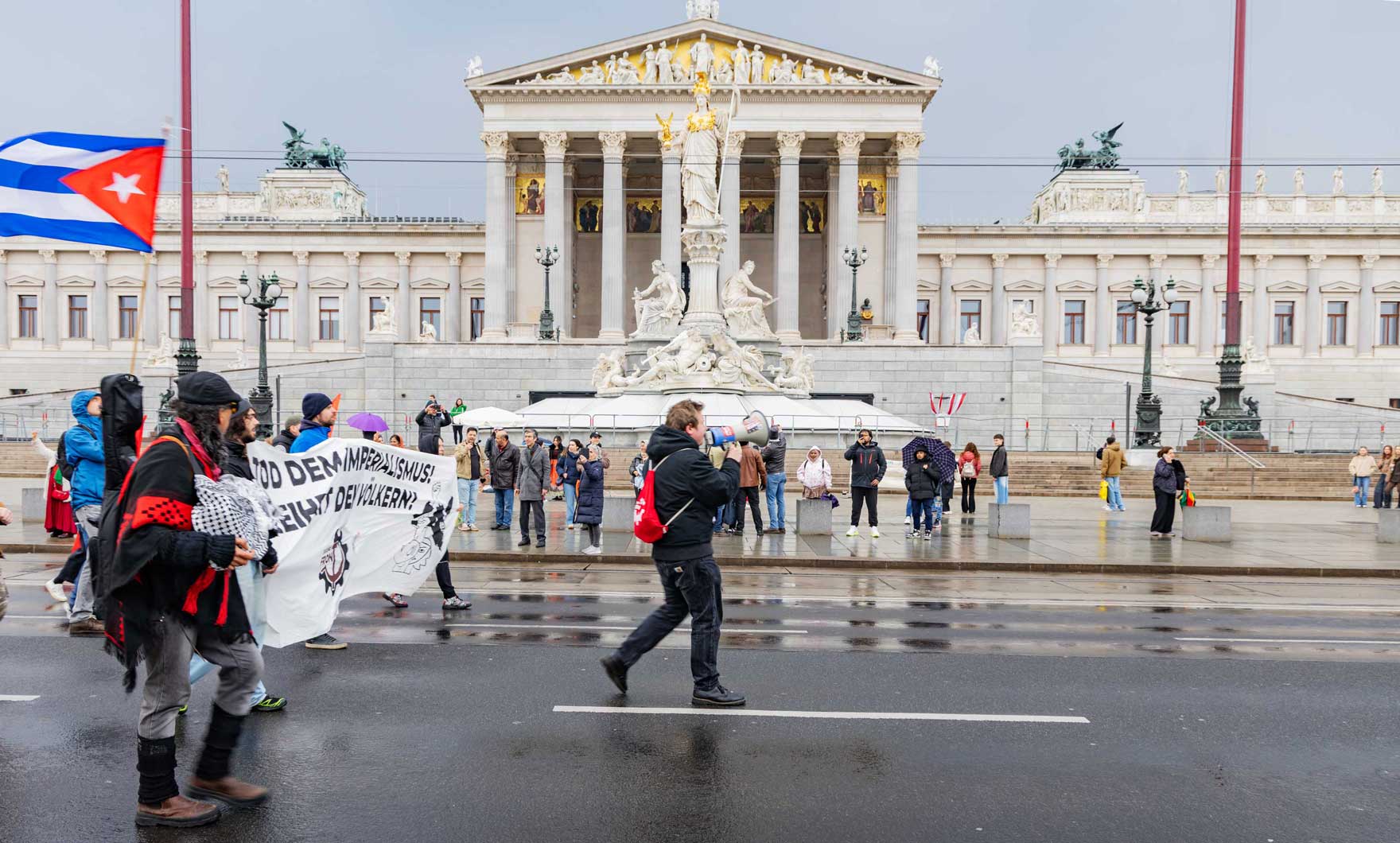 Am Samstag, den 21.3.26 marschierten über dreihundert Menschen durch die Wiener Innenstadt zum Ballhausplatz, um ihrer Solidarität mit dem souveränen Kuba Ausdruck zu verleihen.