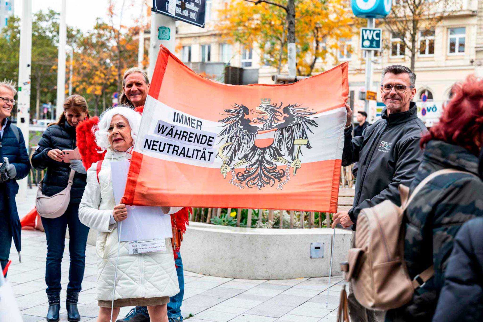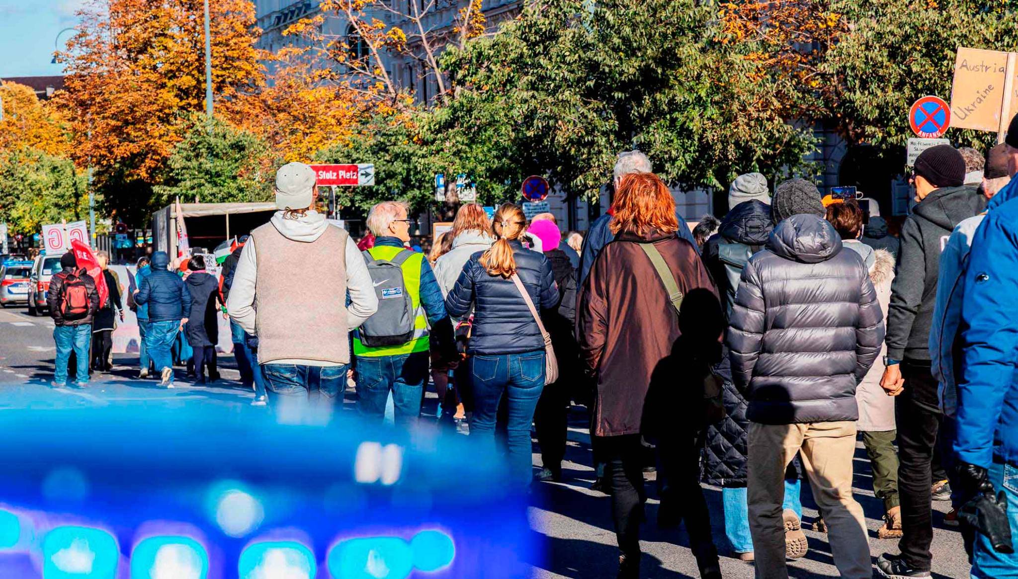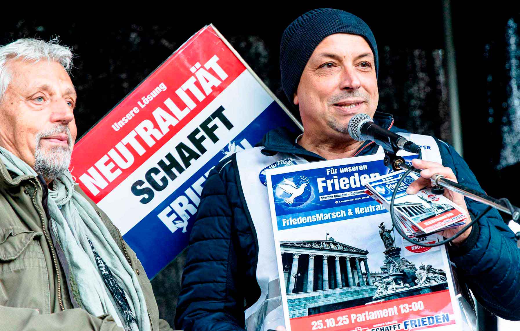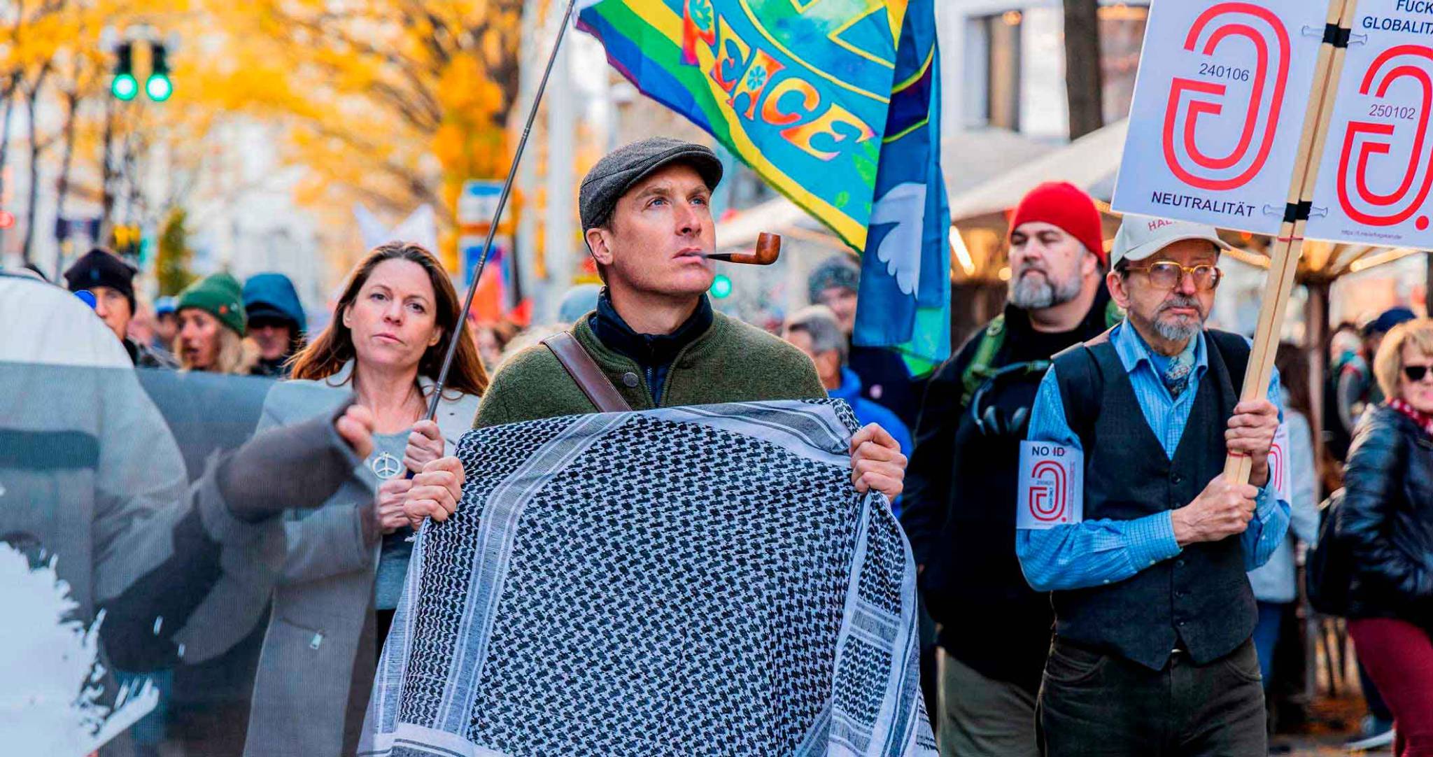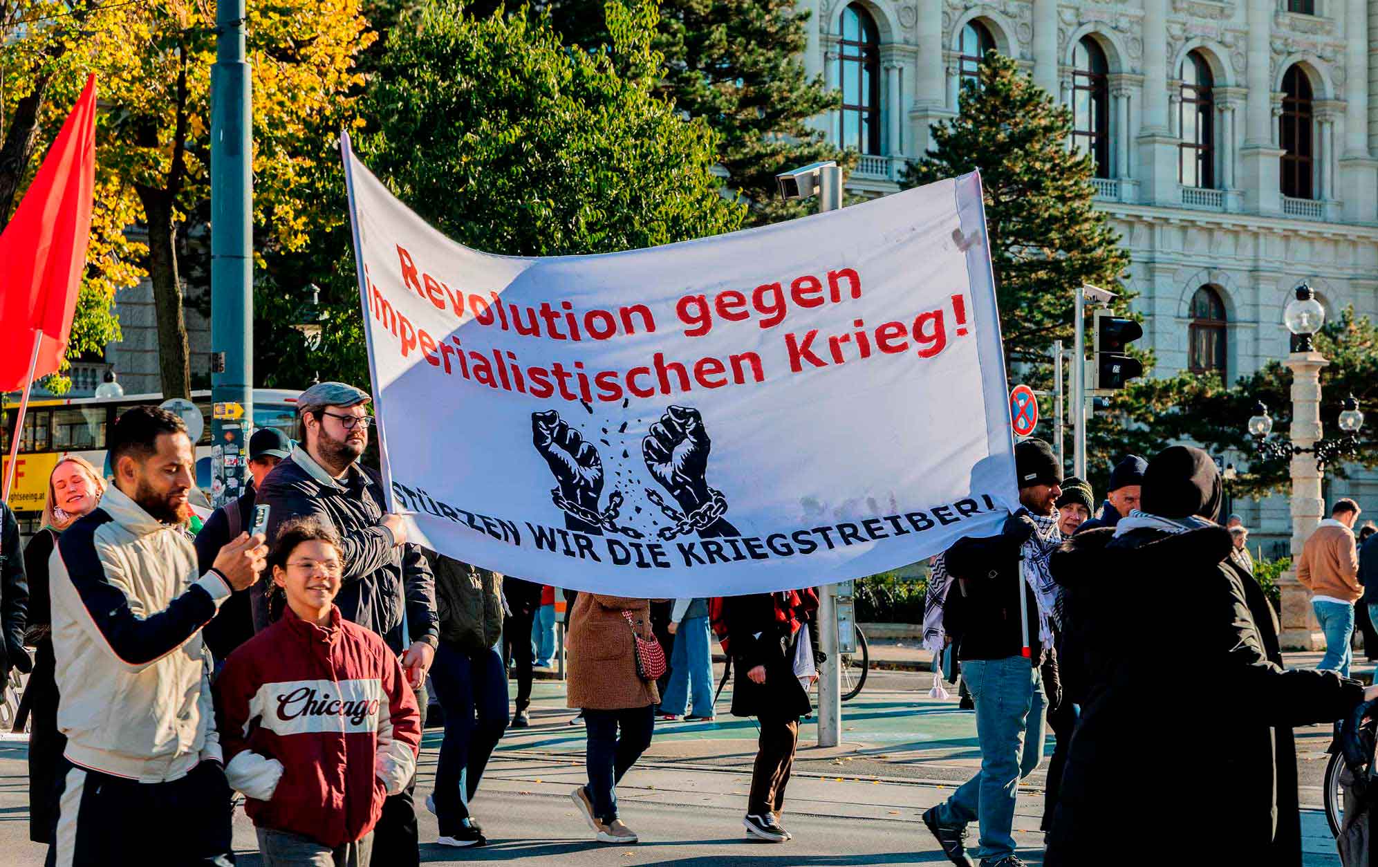 Um ca. 13:30 Uhr hielten die Ersten Ihre Ansprachen am Christian Broda Platz. Um ca. 14:15 Uhr brachen die gesamten Teilnehmer der Demo auf um sich auf der Mariahilfer Straße lautstark für Frieden, Neutralität und Souveränität einzusetzen. Der Gesamt Demo-Zug wurde angeführt von einem großen Block aus den unterschiedlichsten politischen Lagern, die sich geeint haben gegen die Kriegshetze des Establishments. Weiter hinten war ein weiterer Block, angeführt von einem Pritschenwagen, fanden sich dort die internationalen Teilnehmer der Demo, welche auch eine große Gruppe von Palästina-Solidarischen umfasste. Am Ende der Mariahilfer Straße umfasste der Demozug ca. 3.000 Teilnehmer, ein sehr beachtlicher Erfolg für die sperrigen Themen "Frieden und Neutralität", die geflissentlich vom Mainstream umgedeutet oder ignoriert werden.