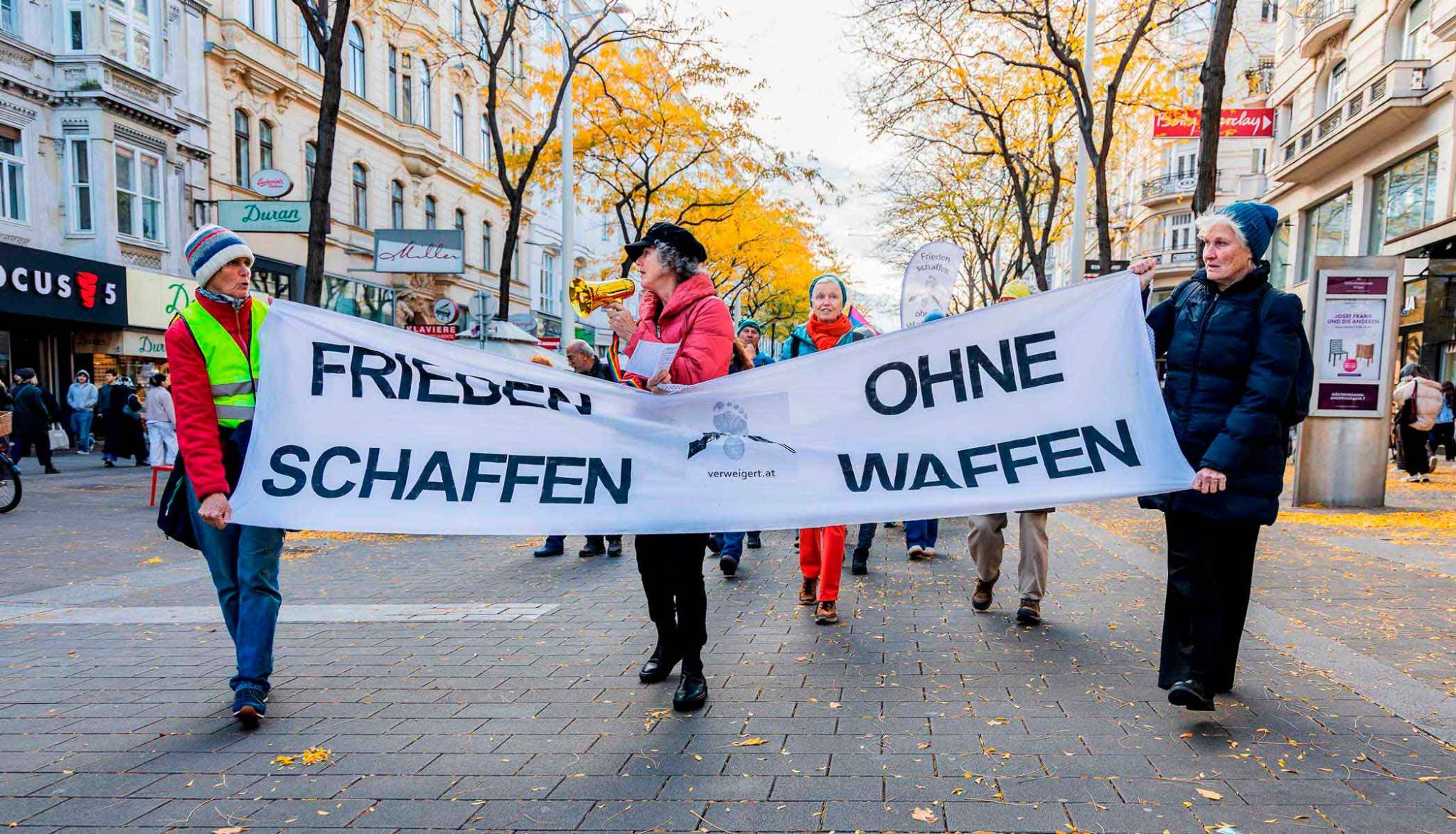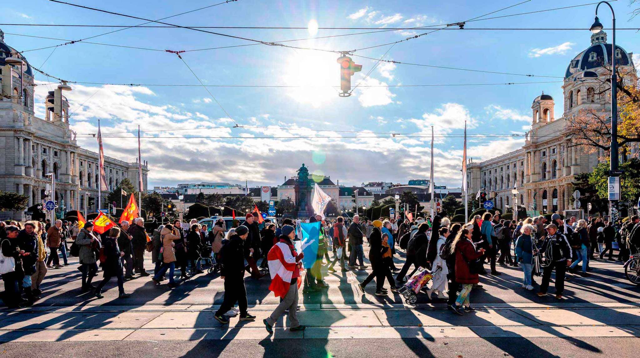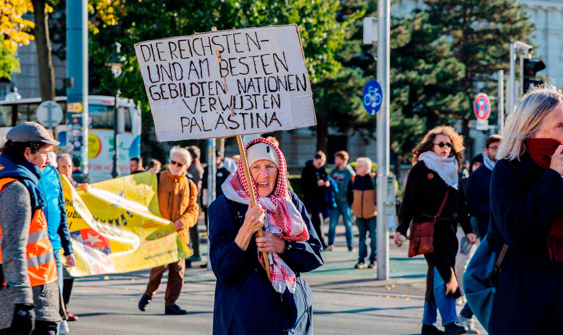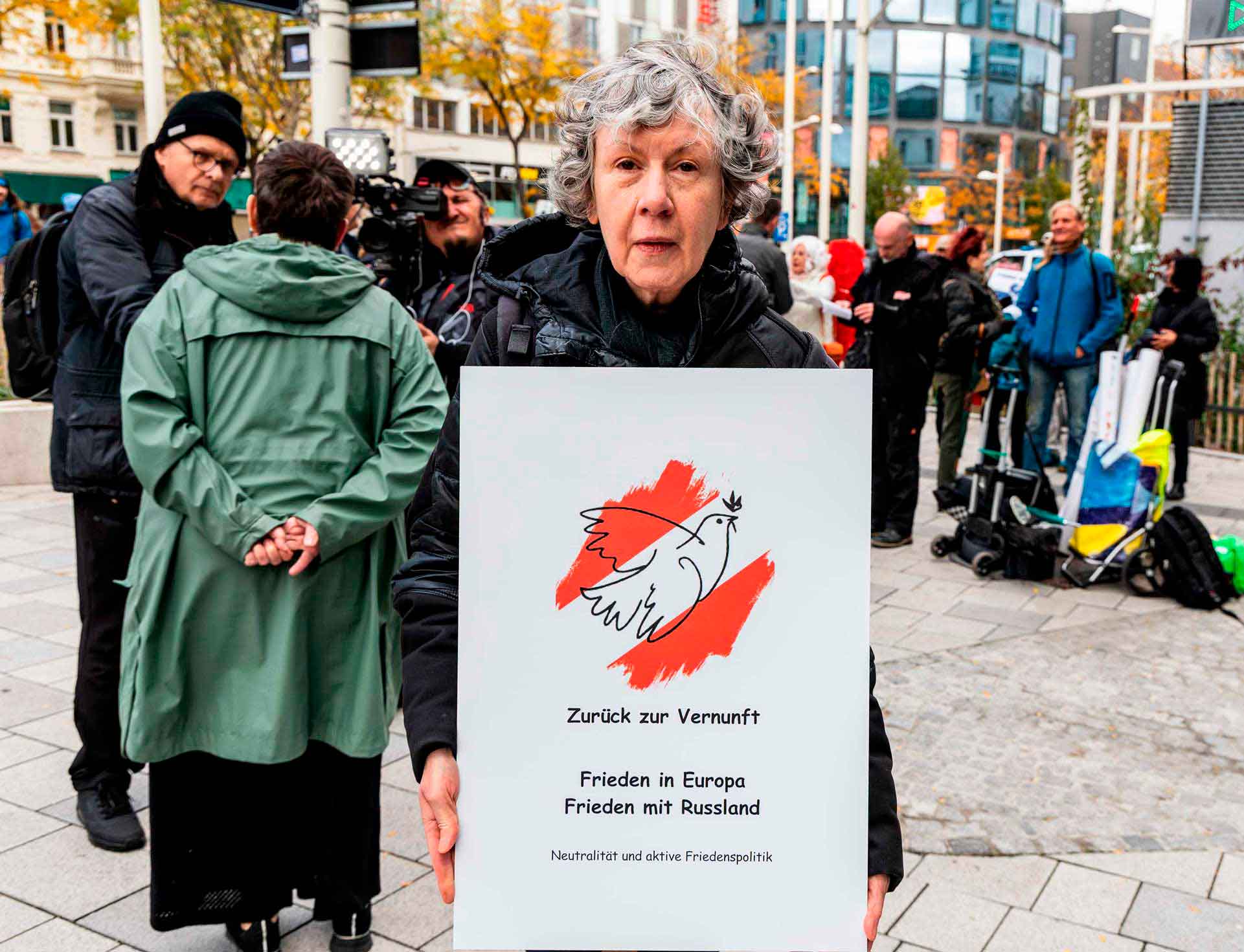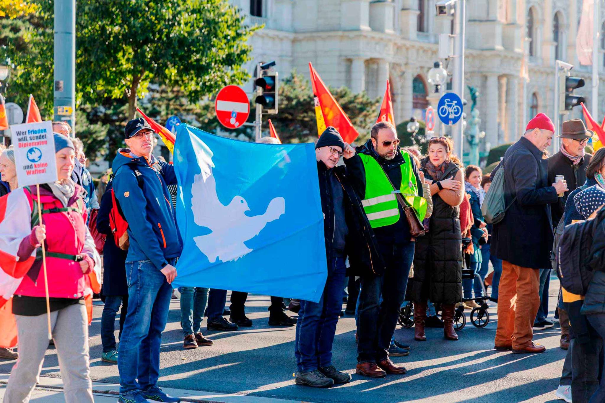 Um ca. 13:30 Uhr hielten die Ersten Ihre Ansprachen am Christian Broda Platz. Um ca. 14:15 Uhr brachen die gesamten Teilnehmer der Demo auf um sich auf der Mariahilfer Straße lautstark für Frieden, Neutralität und Souveränität einzusetzen. Der Gesamt Demo-Zug wurde angeführt von einem großen Block aus den unterschiedlichsten politischen Lagern, die sich geeint haben gegen die Kriegshetze des Establishments. Weiter hinten war ein weiterer Block, angeführt von einem Pritschenwagen, fanden sich dort die internationalen Teilnehmer der Demo, welche auch eine große Gruppe von Palästina-Solidarischen umfasste. Am Ende der Mariahilfer Straße umfasste der Demozug ca. 3.000 Teilnehmer, ein sehr beachtlicher Erfolg für die sperrigen Themen "Frieden und Neutralität", die geflissentlich vom Mainstream umgedeutet oder ignoriert werden.