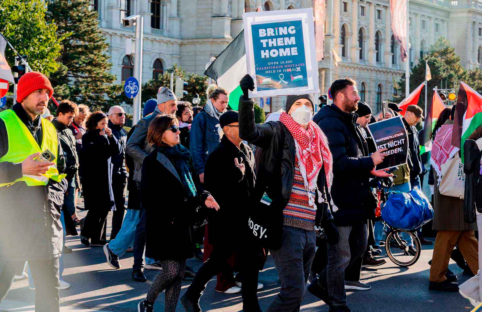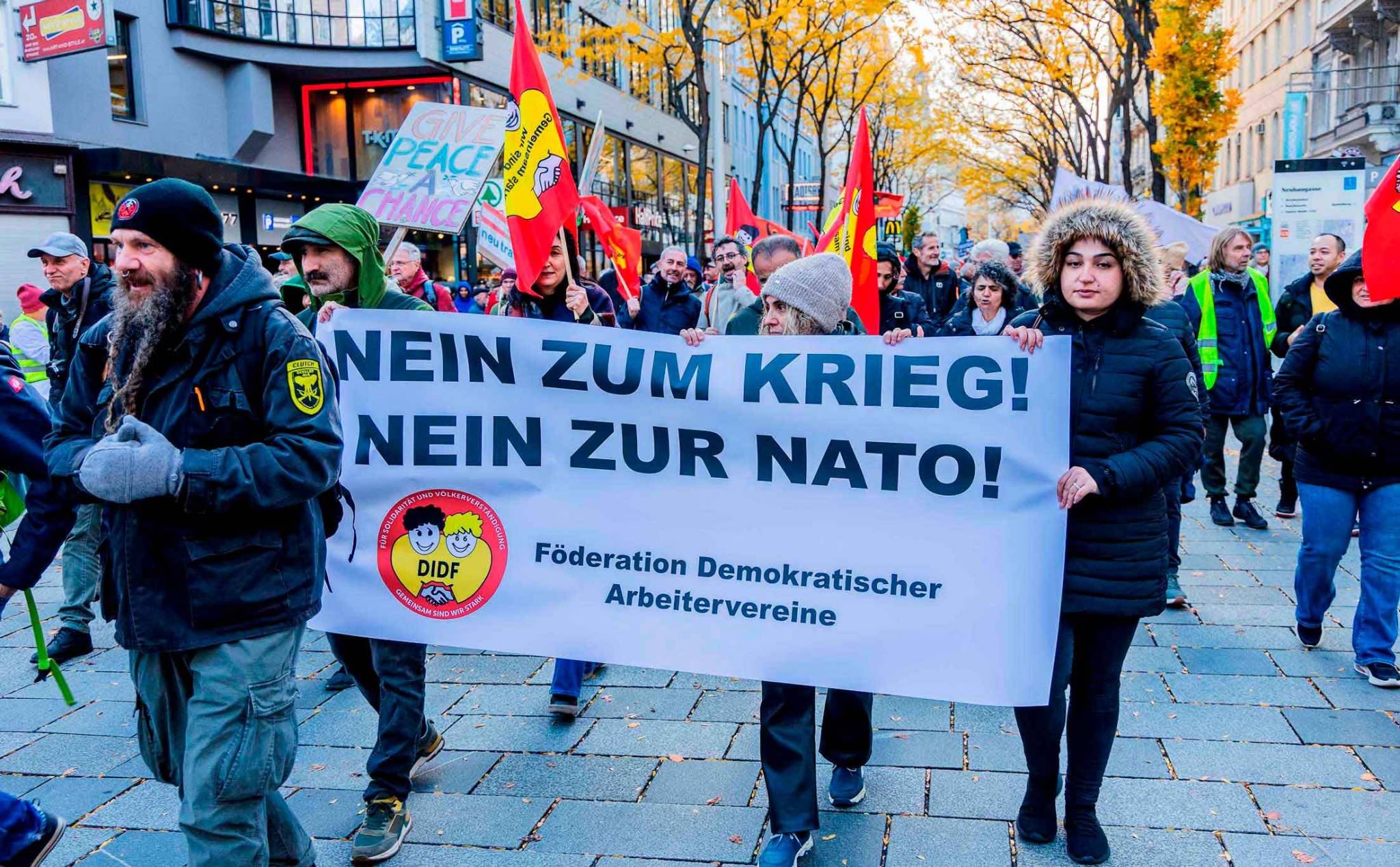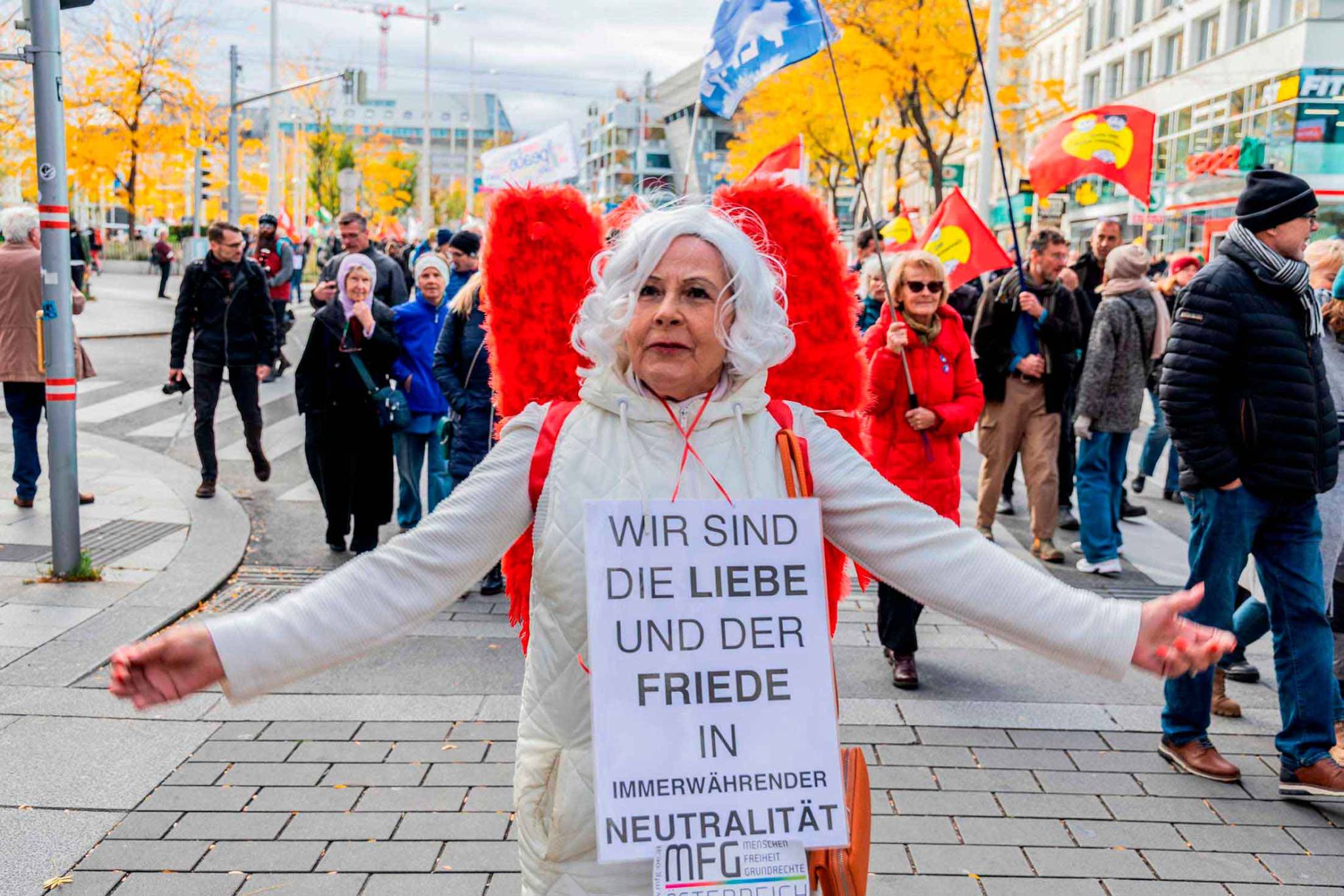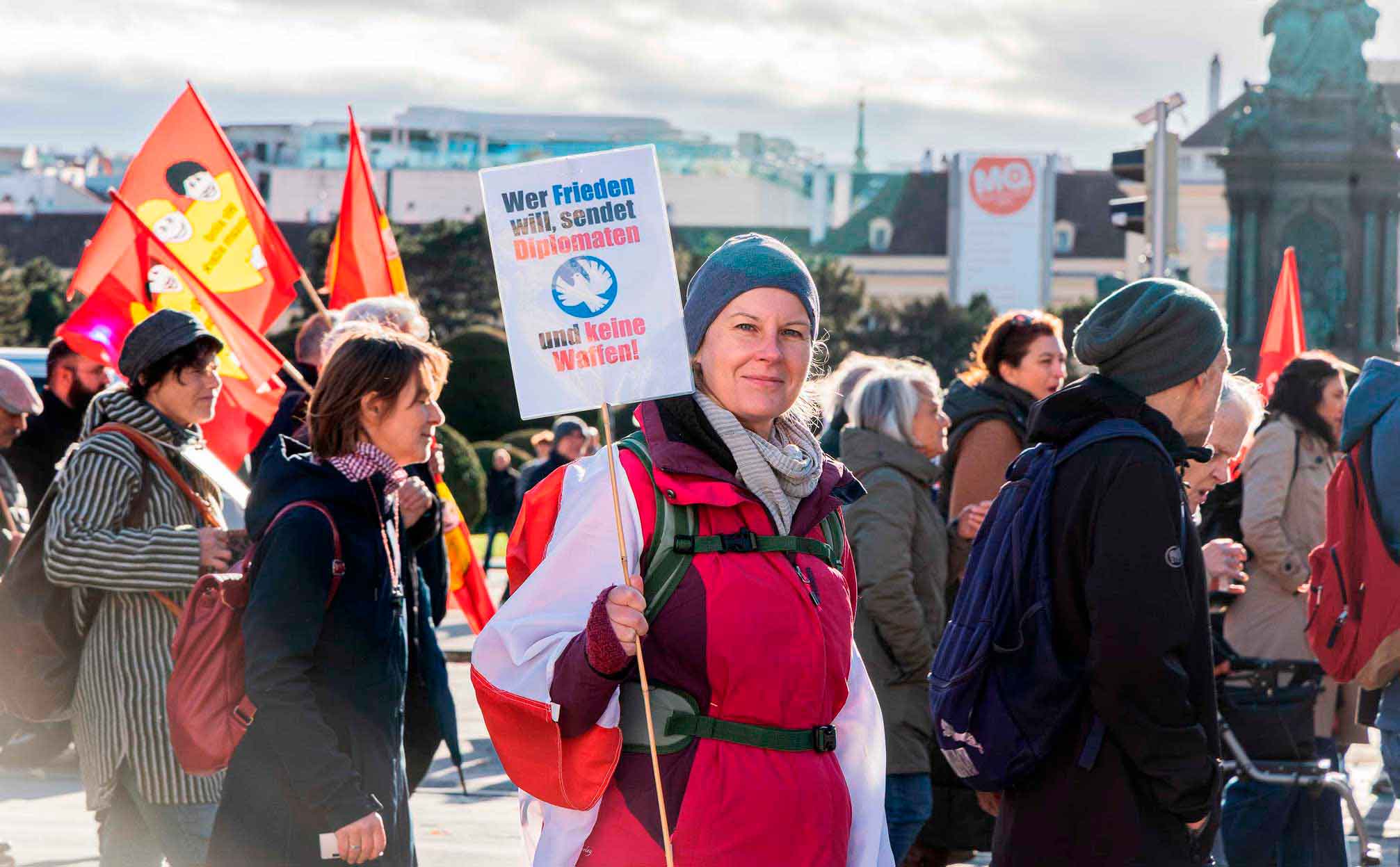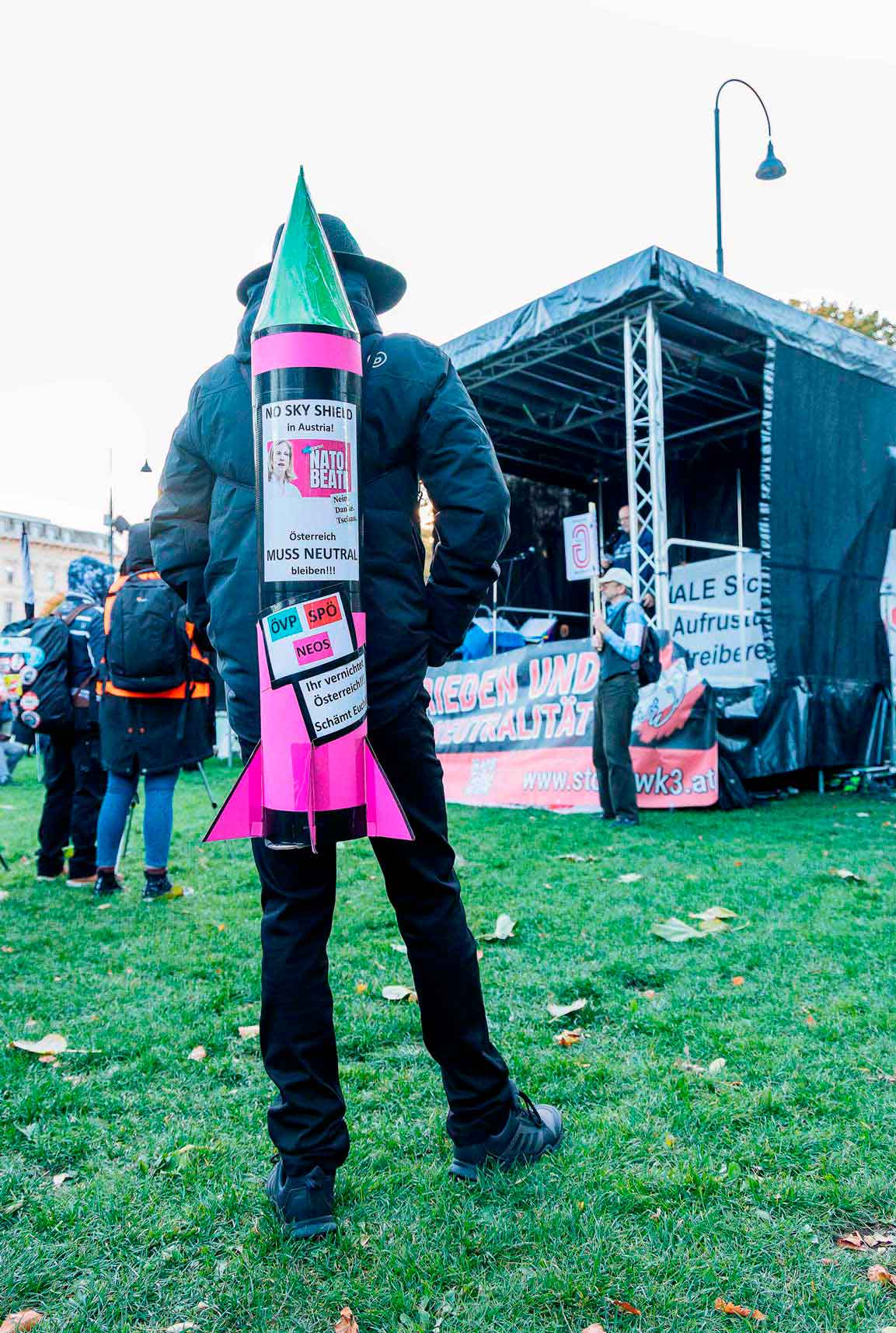 Um ca. 13:30 Uhr hielten die Ersten Ihre Ansprachen am Christian Broda Platz. Um ca. 14:15 Uhr brachen die gesamten Teilnehmer der Demo auf um sich auf der Mariahilfer Straße lautstark für Frieden, Neutralität und Souveränität einzusetzen. Der Gesamt Demo-Zug wurde angeführt von einem großen Block aus den unterschiedlichsten politischen Lagern, die sich geeint haben gegen die Kriegshetze des Establishments. Weiter hinten war ein weiterer Block, angeführt von einem Pritschenwagen, fanden sich dort die internationalen Teilnehmer der Demo, welche auch eine große Gruppe von Palästina-Solidarischen umfasste. Am Ende der Mariahilfer Straße umfasste der Demozug ca. 3.000 Teilnehmer, ein sehr beachtlicher Erfolg für die sperrigen Themen "Frieden und Neutralität", die geflissentlich vom Mainstream umgedeutet oder ignoriert werden.