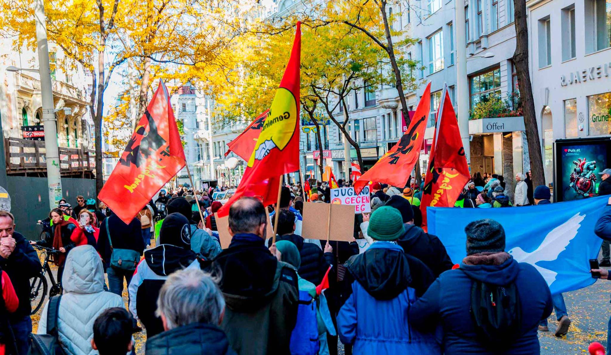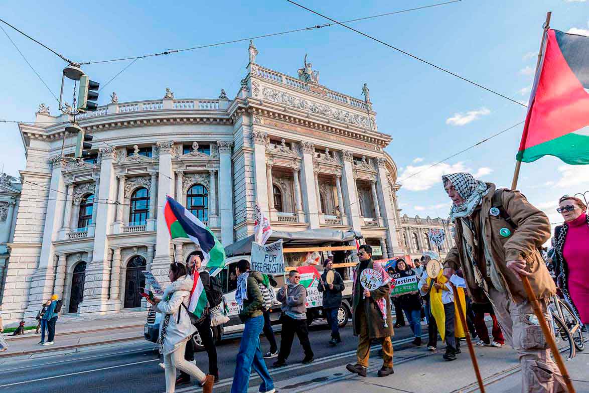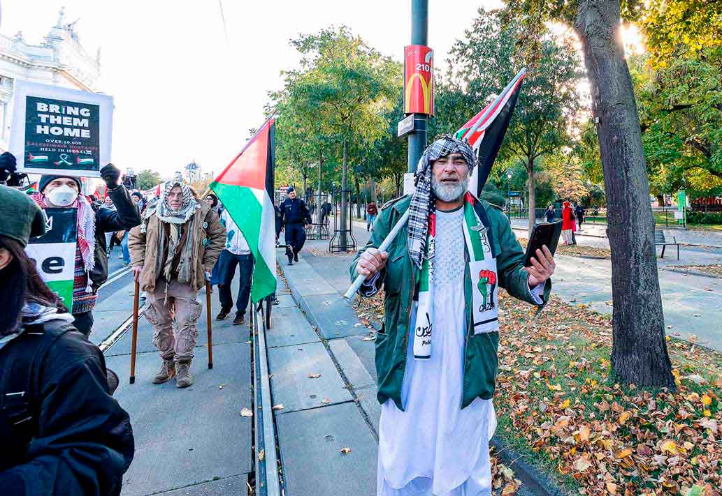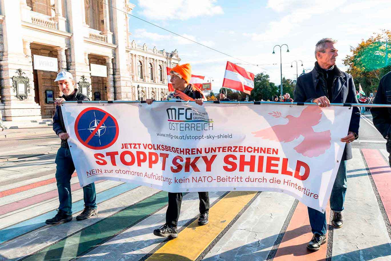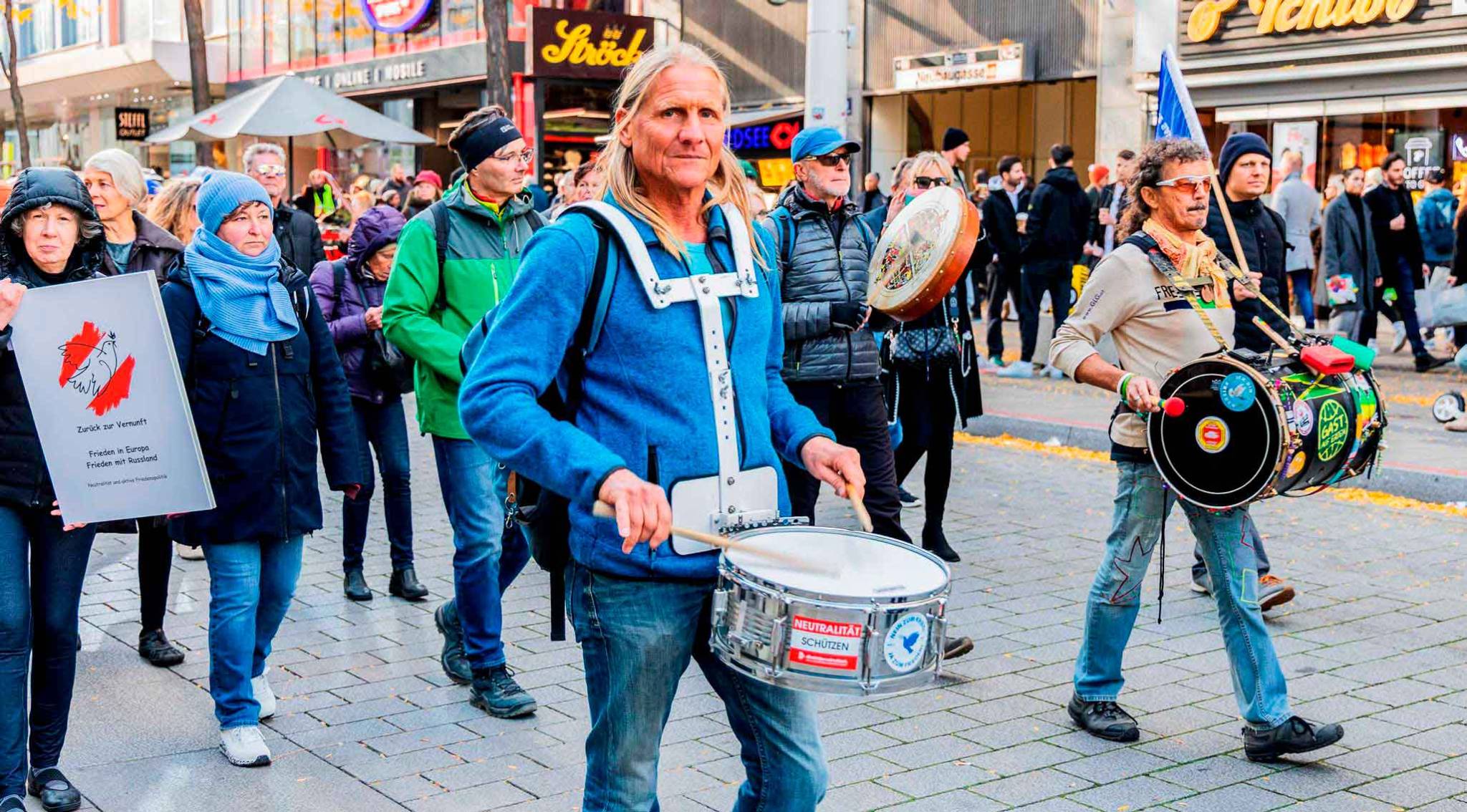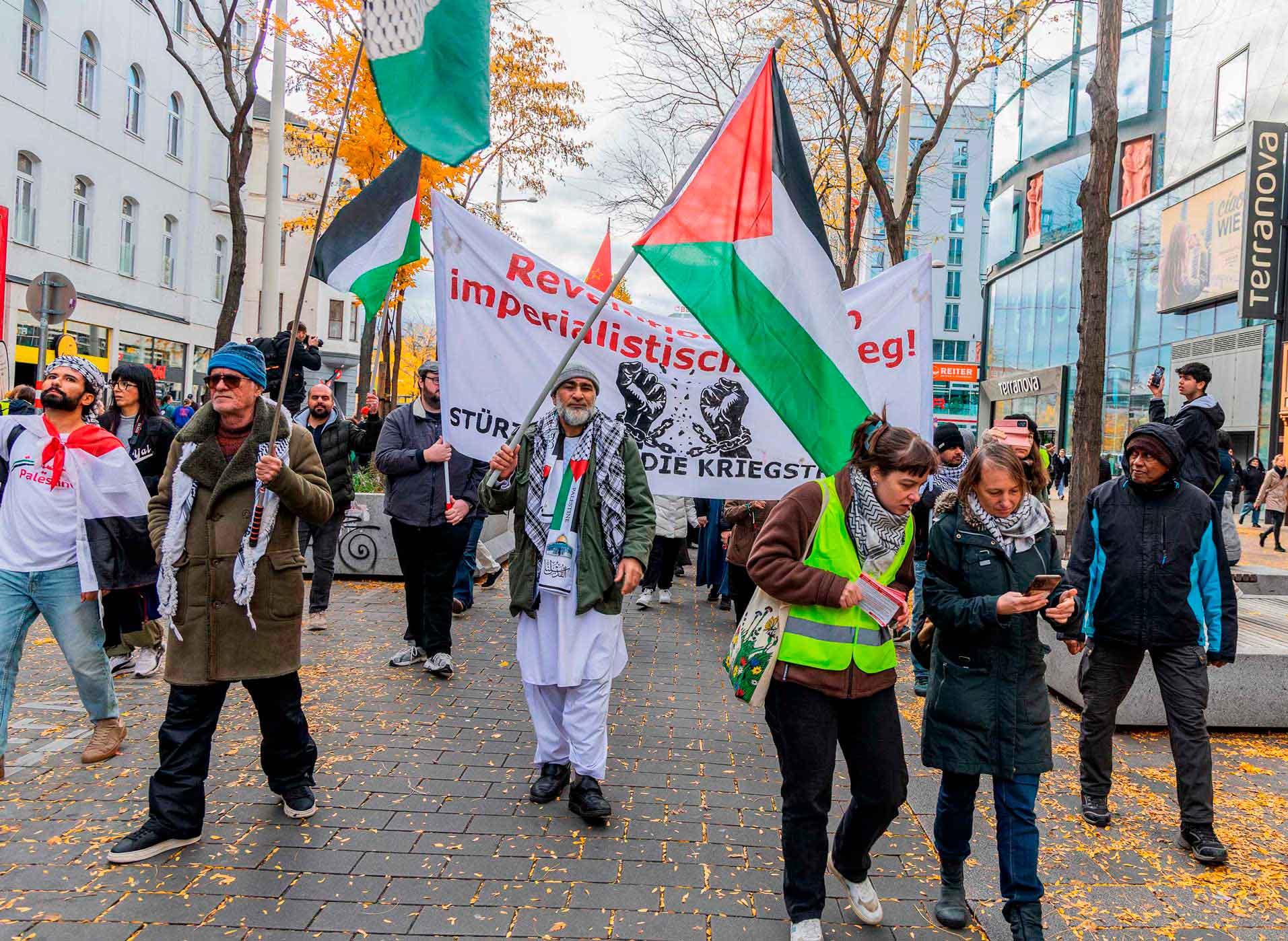 Um ca. 13:30 Uhr hielten die Ersten Ihre Ansprachen am Christian Broda Platz. Um ca. 14:15 Uhr brachen die gesamten Teilnehmer der Demo auf um sich auf der Mariahilfer Straße lautstark für Frieden, Neutralität und Souveränität einzusetzen. Der Gesamt Demo-Zug wurde angeführt von einem großen Block aus den unterschiedlichsten politischen Lagern, die sich geeint haben gegen die Kriegshetze des Establishments. Weiter hinten war ein weiterer Block, angeführt von einem Pritschenwagen, fanden sich dort die internationalen Teilnehmer der Demo, welche auch eine große Gruppe von Palästina-Solidarischen umfasste. Am Ende der Mariahilfer Straße umfasste der Demozug ca. 3.000 Teilnehmer, ein sehr beachtlicher Erfolg für die sperrigen Themen "Frieden und Neutralität", die geflissentlich vom Mainstream umgedeutet oder ignoriert werden.