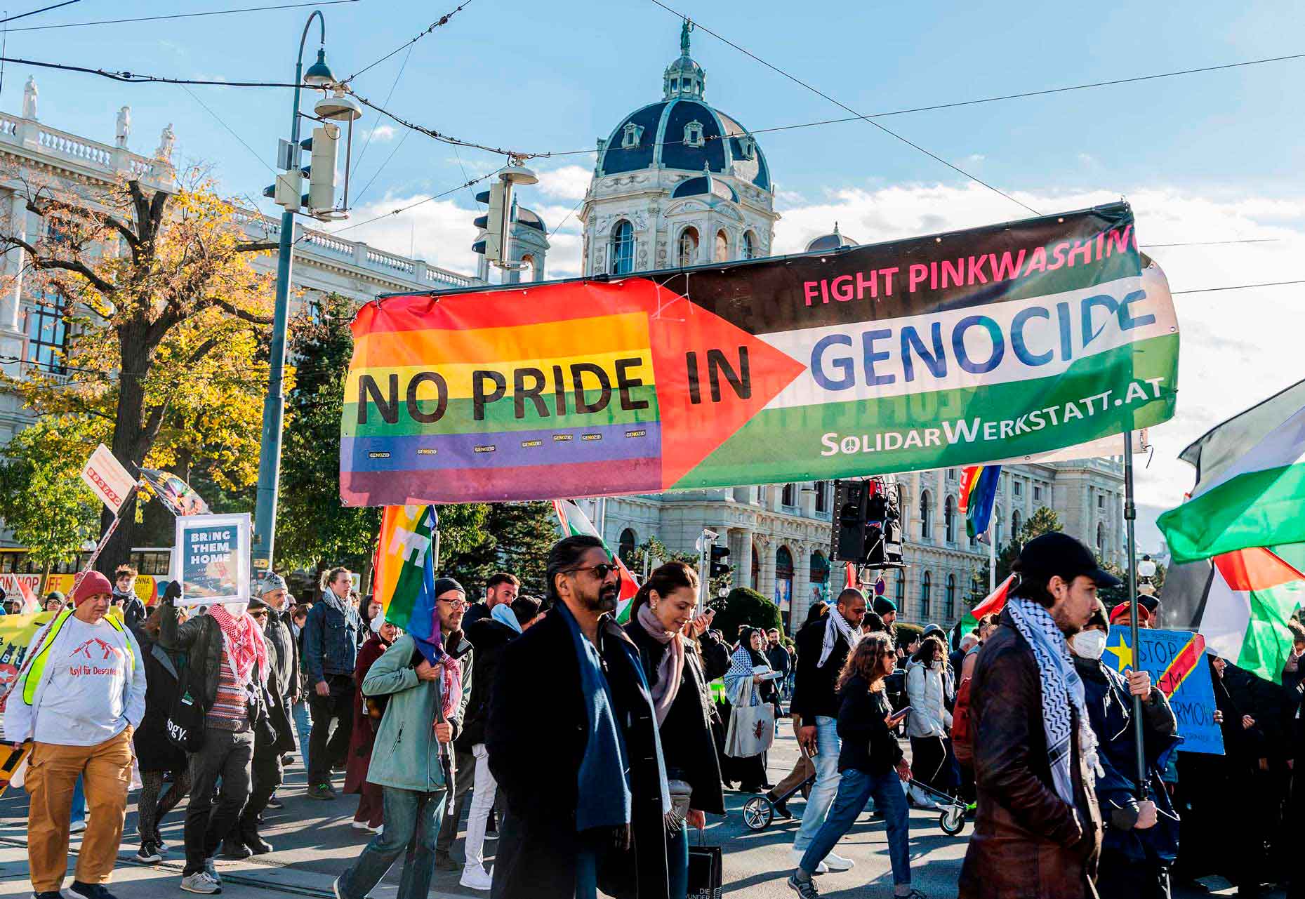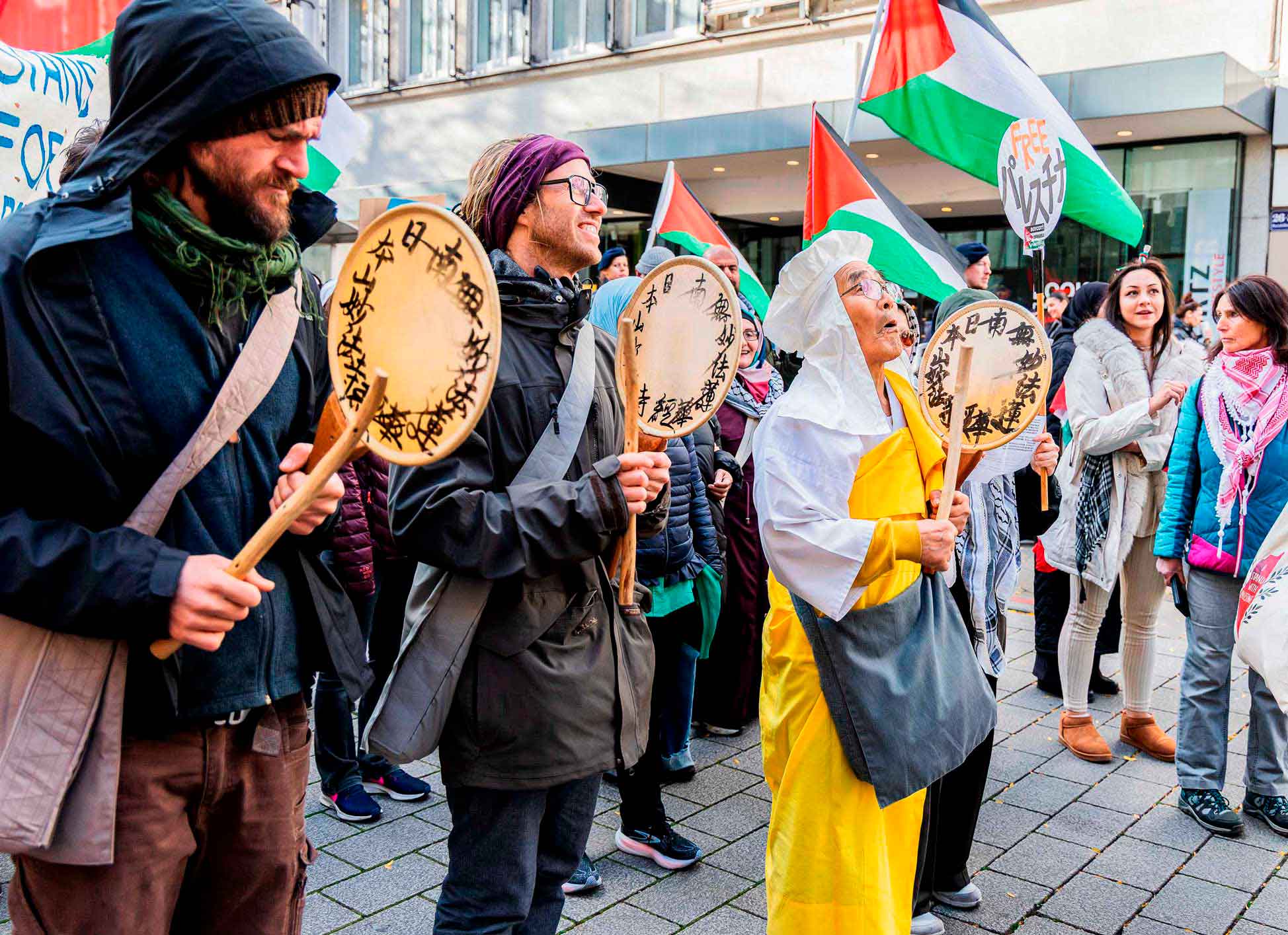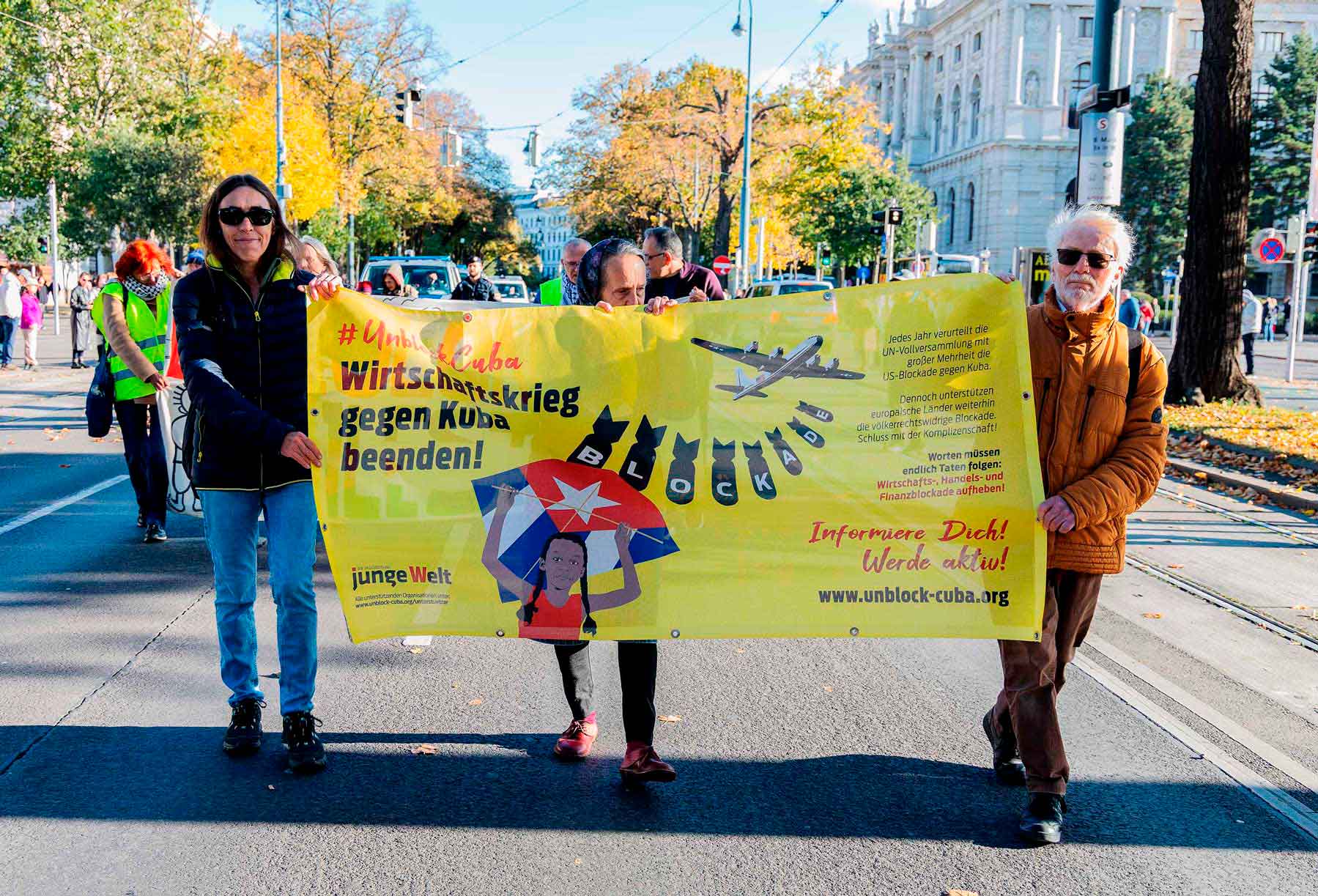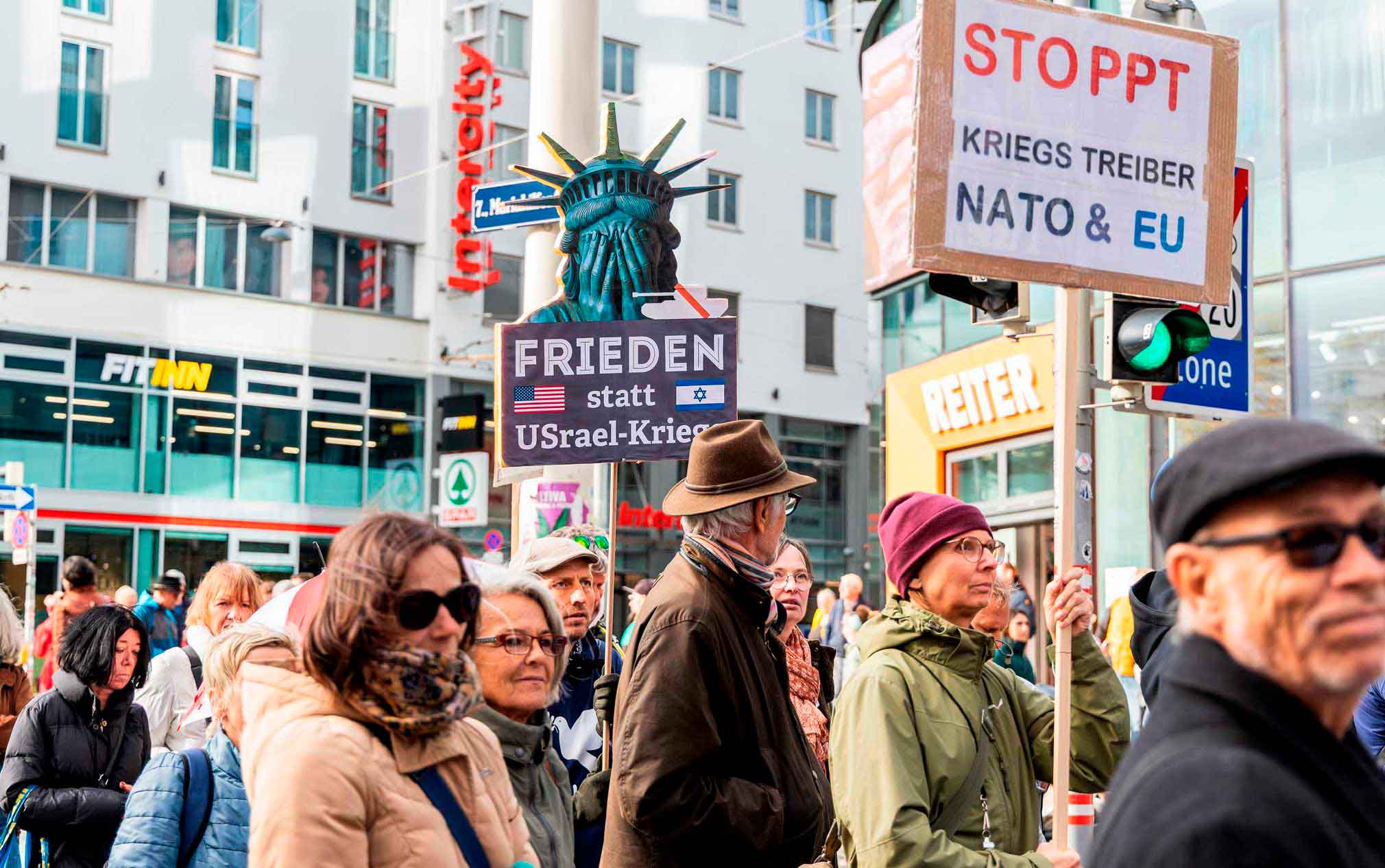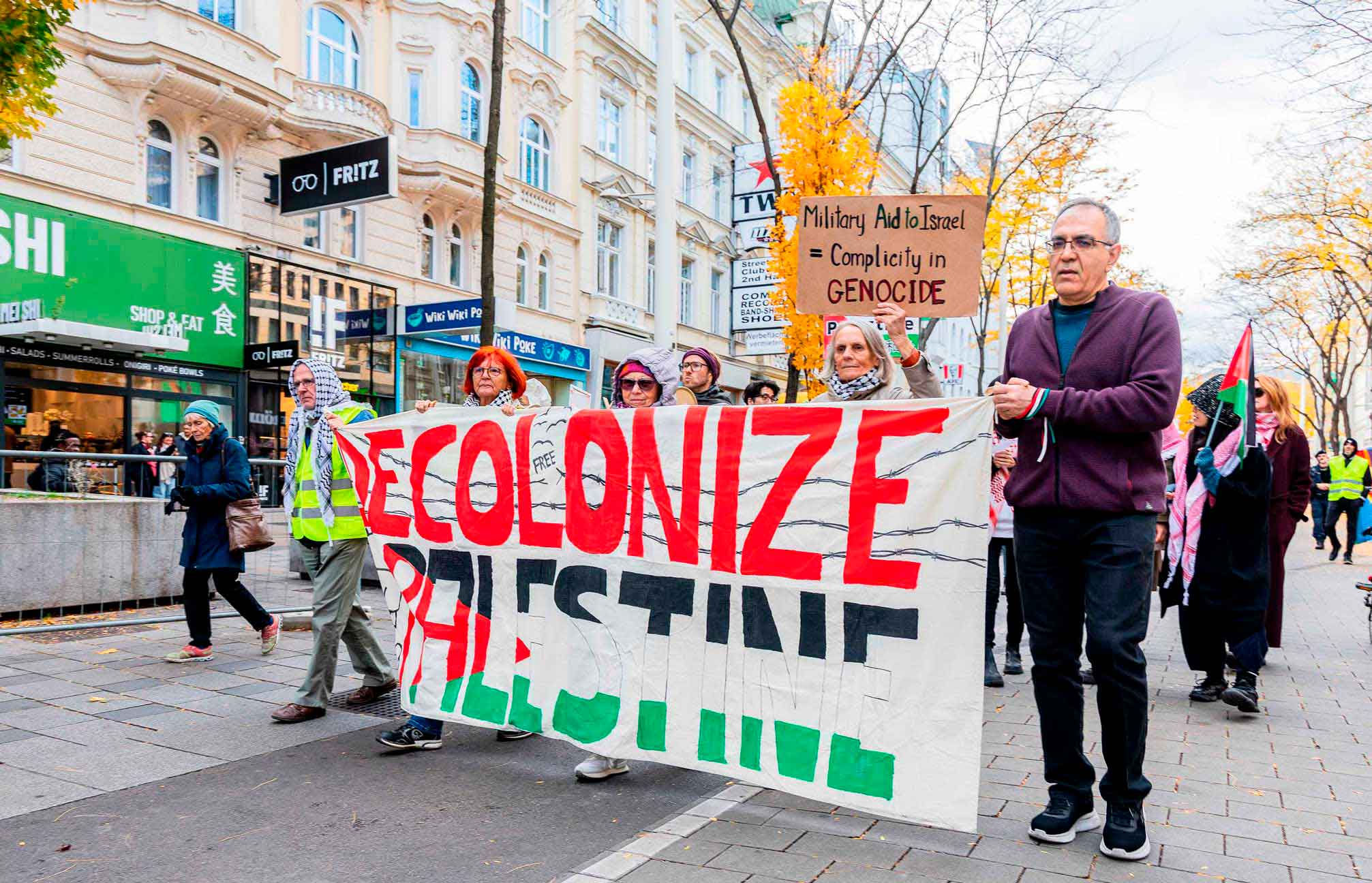 Um ca. 13:30 Uhr hielten die Ersten Ihre Ansprachen am Christian Broda Platz. Um ca. 14:15 Uhr brachen die gesamten Teilnehmer der Demo auf um sich auf der Mariahilfer Straße lautstark für Frieden, Neutralität und Souveränität einzusetzen. Der Gesamt Demo-Zug wurde angeführt von einem großen Block aus den unterschiedlichsten politischen Lagern, die sich geeint haben gegen die Kriegshetze des Establishments. Weiter hinten war ein weiterer Block, angeführt von einem Pritschenwagen, fanden sich dort die internationalen Teilnehmer der Demo, welche auch eine große Gruppe von Palästina-Solidarischen umfasste. Am Ende der Mariahilfer Straße umfasste der Demozug ca. 3.000 Teilnehmer, ein sehr beachtlicher Erfolg für die sperrigen Themen "Frieden und Neutralität", die geflissentlich vom Mainstream umgedeutet oder ignoriert werden.