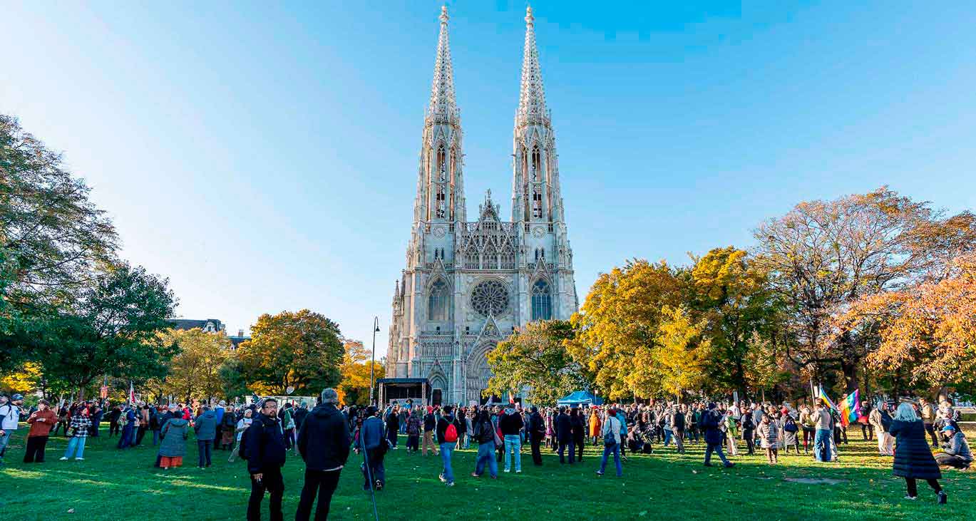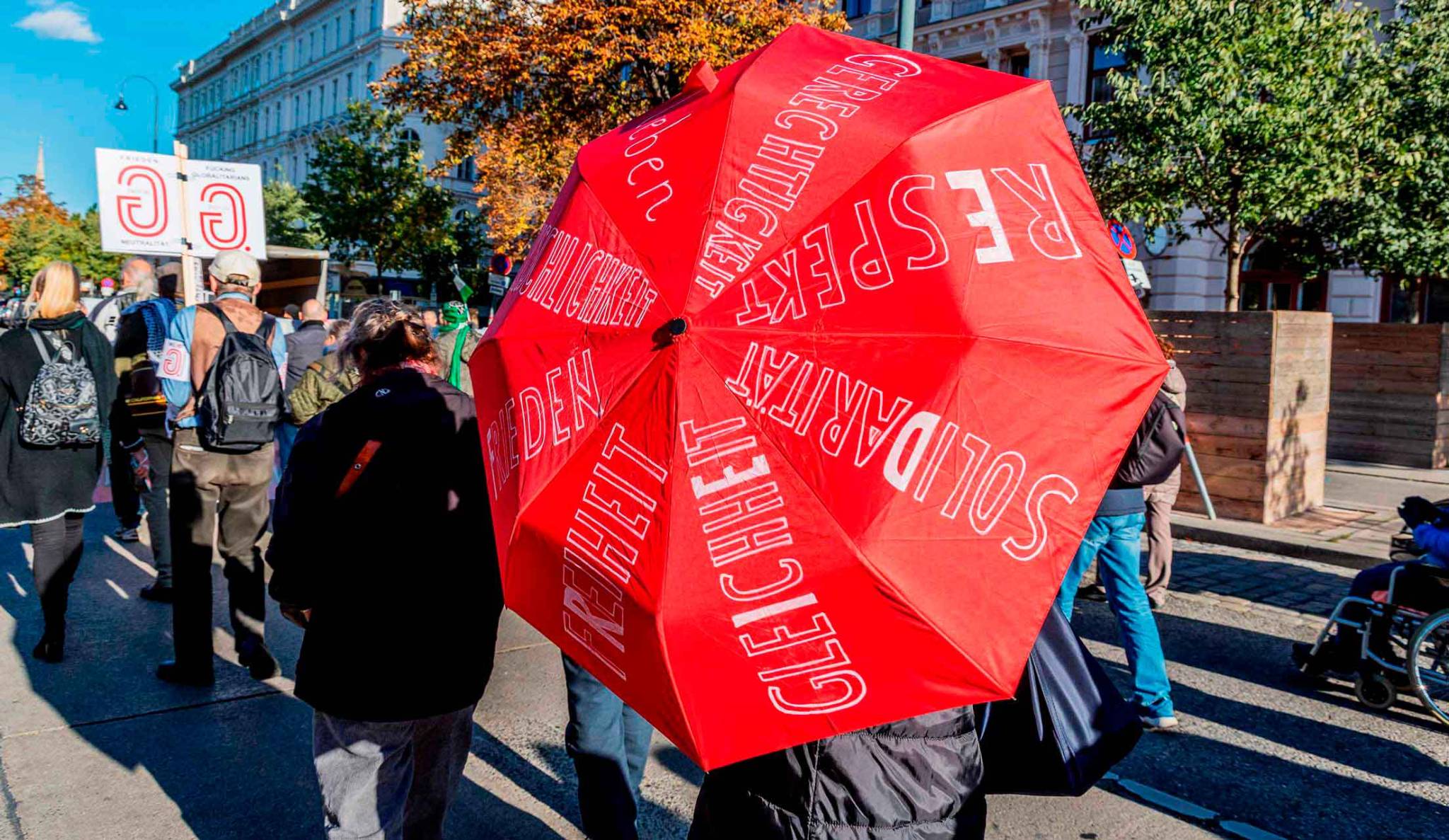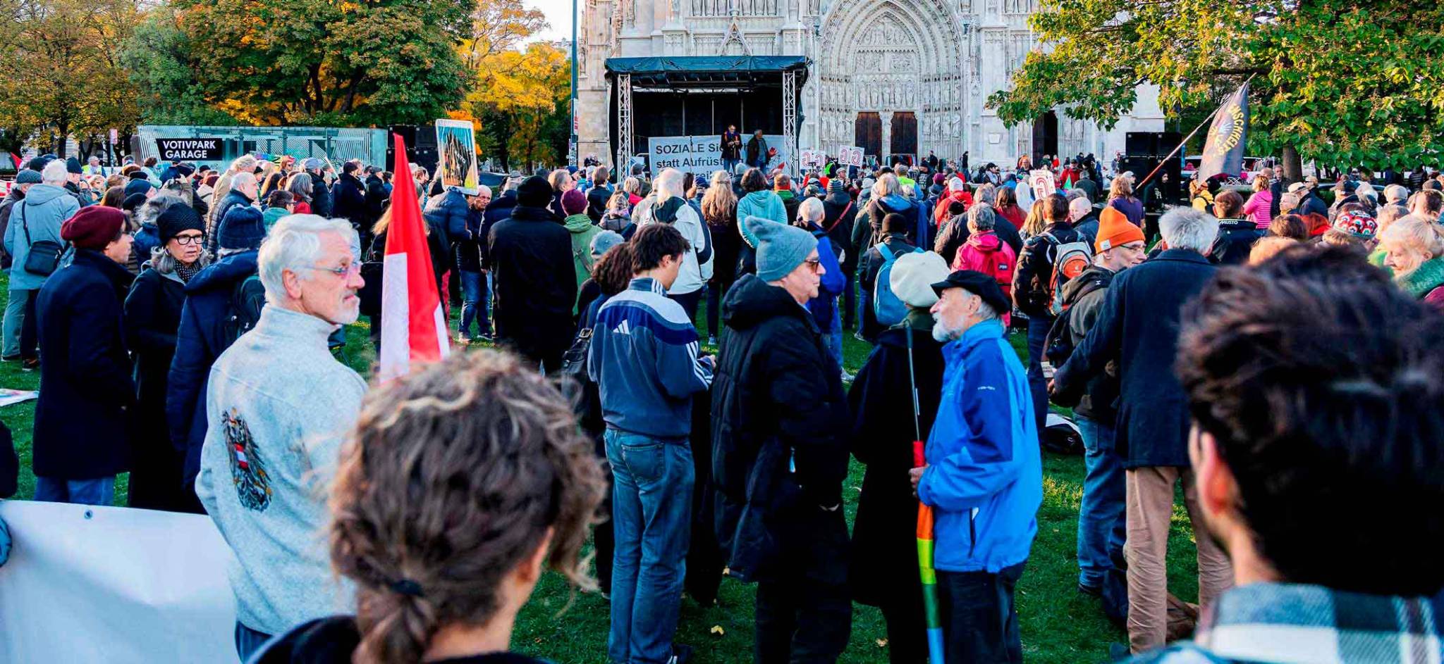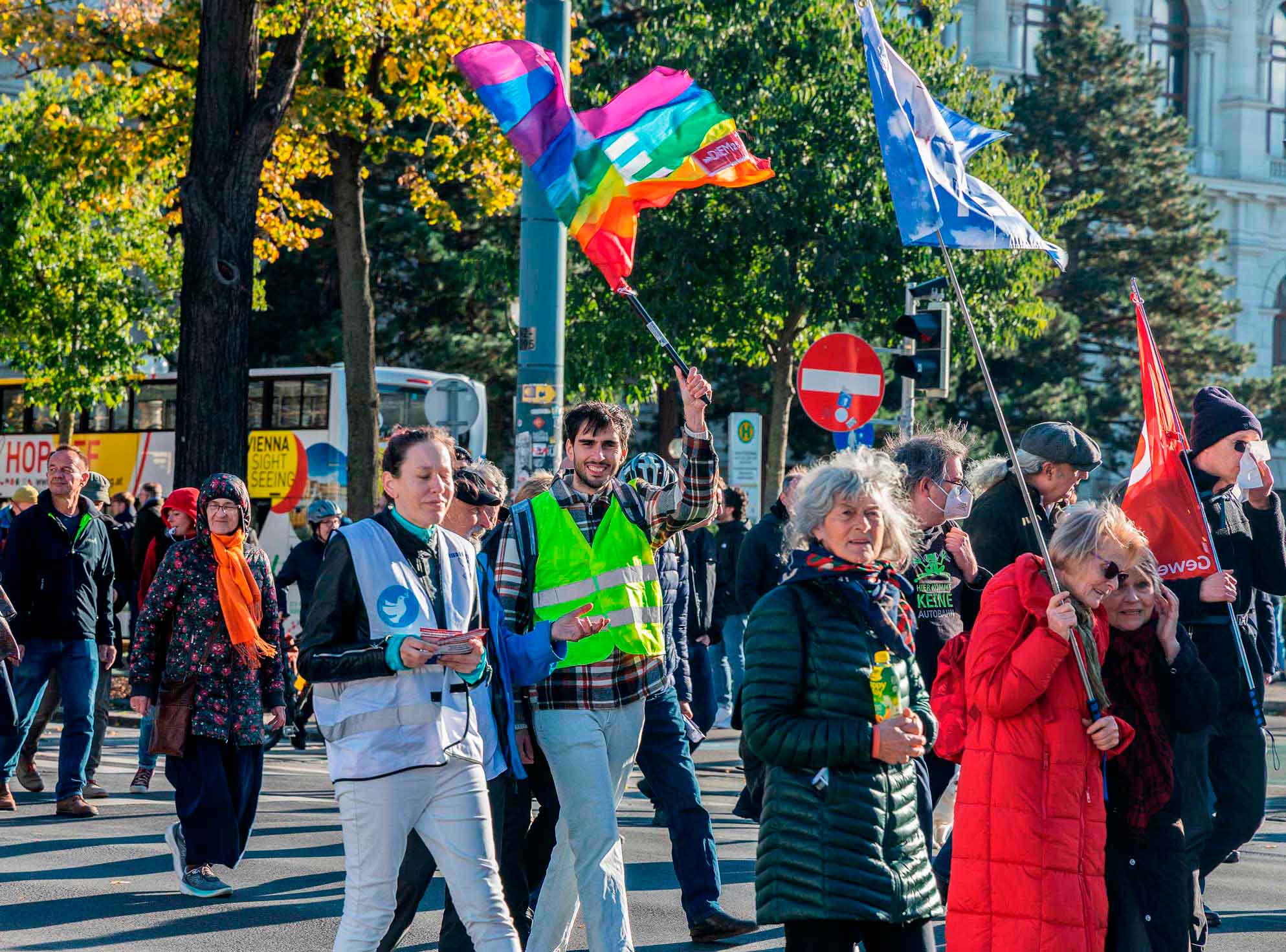 Gegen 16:20 Uhr bog der Zug auf die Ringstraße ab um schließlich gegen 17:00 Uhr am Ziel, im Votivpark anzukommen, wo die Abschlussreden ihre Hörerschaft fanden. Für besonders Ausdauernden gab es die letzte Rede um ca. 18:30 Uhr.