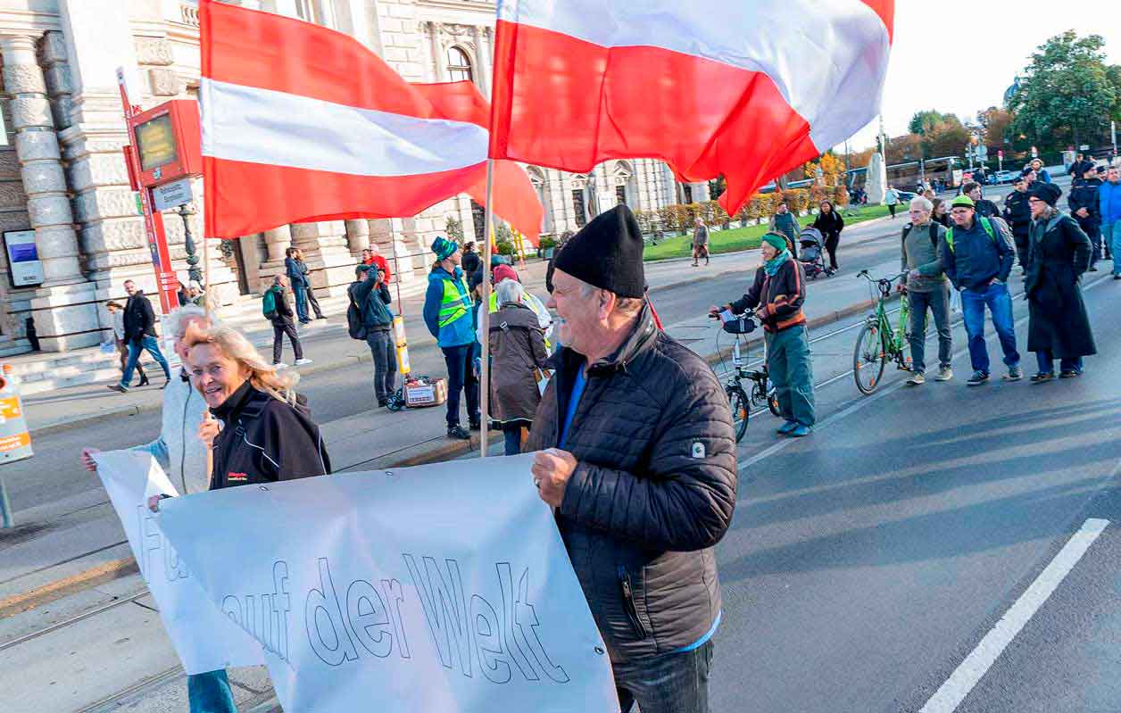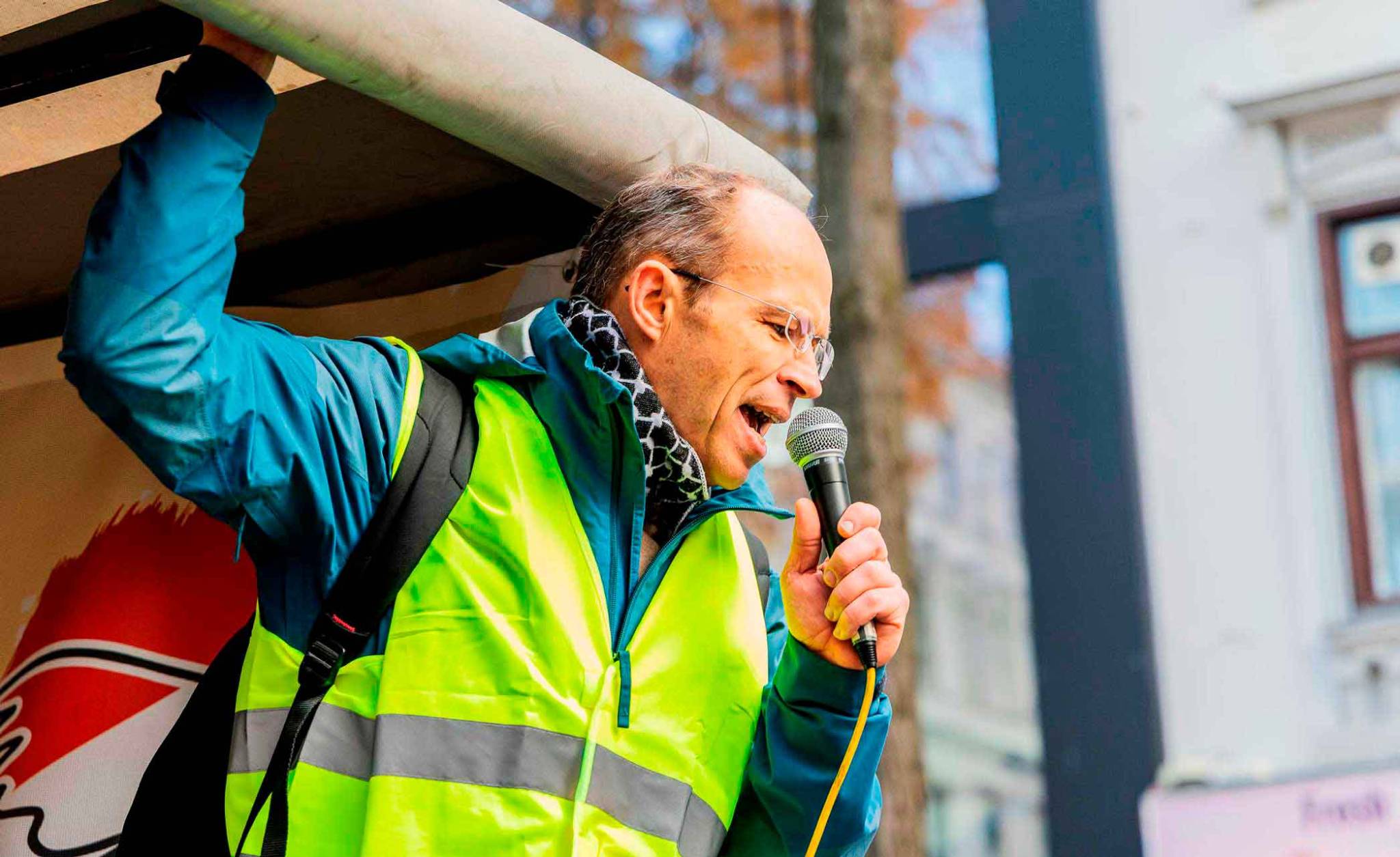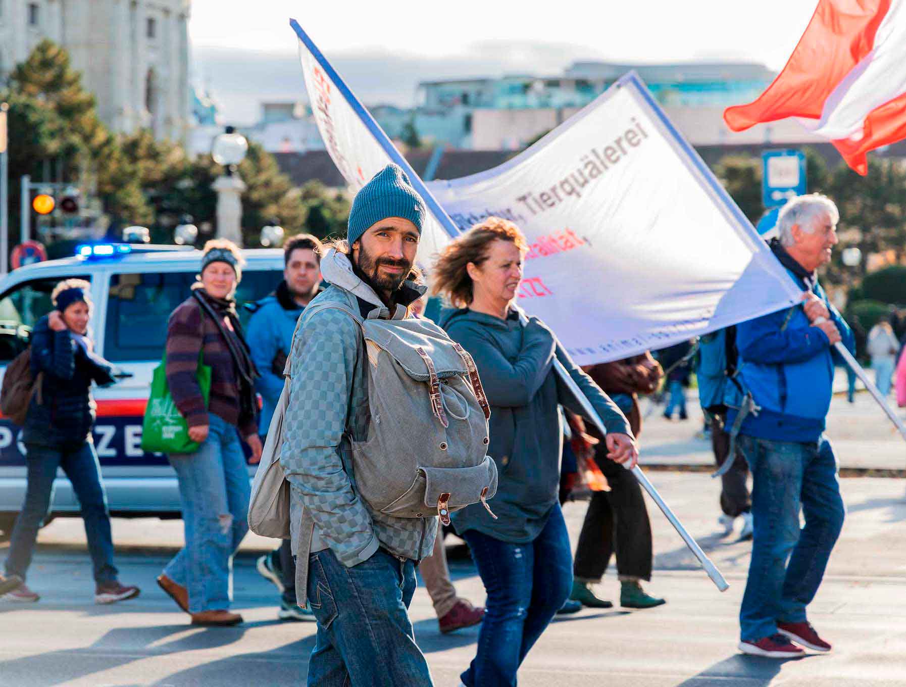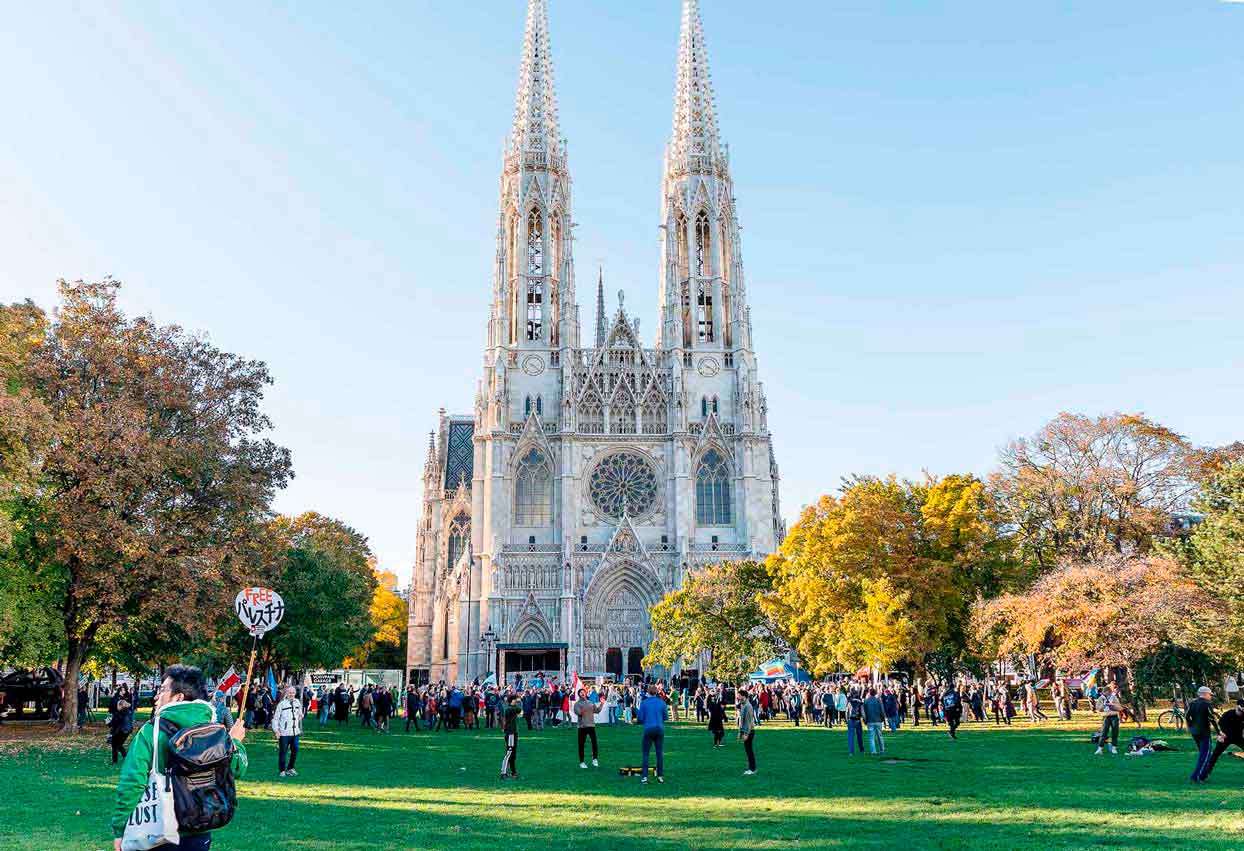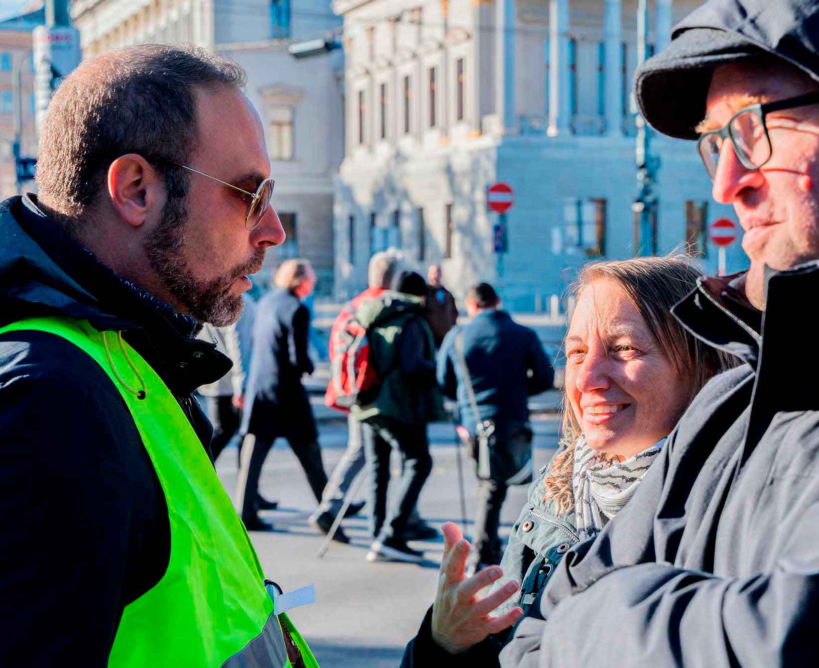 Gegen 16:20 Uhr bog der Zug auf die Ringstraße ab um schließlich gegen 17:00 Uhr am Ziel, im Votivpark anzukommen, wo die Abschlussreden ihre Hörerschaft fanden. Für besonders Ausdauernden gab es die letzte Rede um ca. 18:30 Uhr.