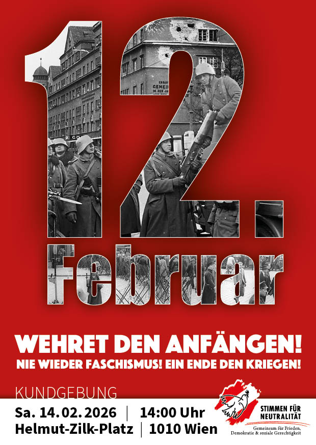 Die Erfahrungen des 12. Februar 1934 verlangen unter den gegenwärtigen Bedingungen nach einer politischen Massenbasis innerhalb der österreichischen Bevölkerung, die sich offensiv um Demokratie und gegen den zunehmenden Autoritarismus engagiert. Es bedarf einer politisch organisierten Bewegung, die sich konsequent für Demokratie und sozialen Fortschritt engagiert. Die Rolle des politischen Kampfs um die nationale Souveränität Österreichs steht durch die immer stärker werdende NATO-Anbindung und die unkommentierte blinde Akzeptanz der Kriegsorientierung der EU seitens unserer Bundesregierung auf der Tagesordnung. Es muss uns um die Wiederherstellung der Österreich schützenden Neutralitätspolitik gehen – vielmehr noch, um die Aufrechterhaltung und Sicherstellung der Errungenschaften der 2. Republik.